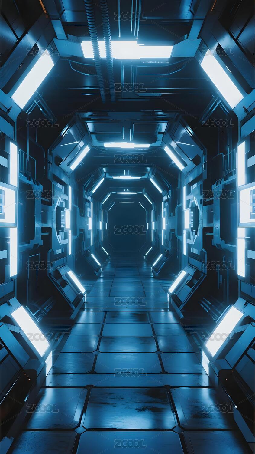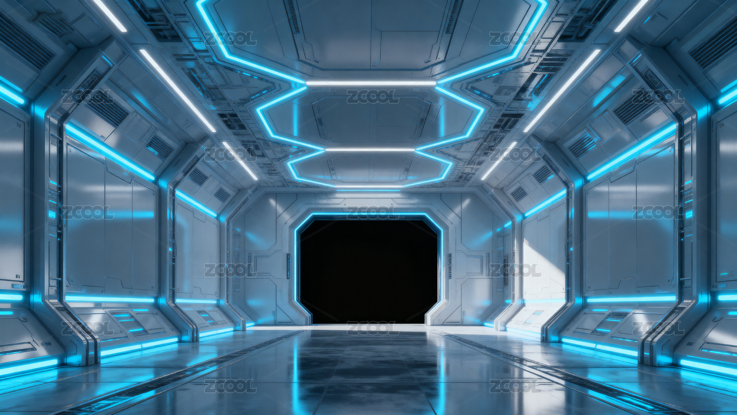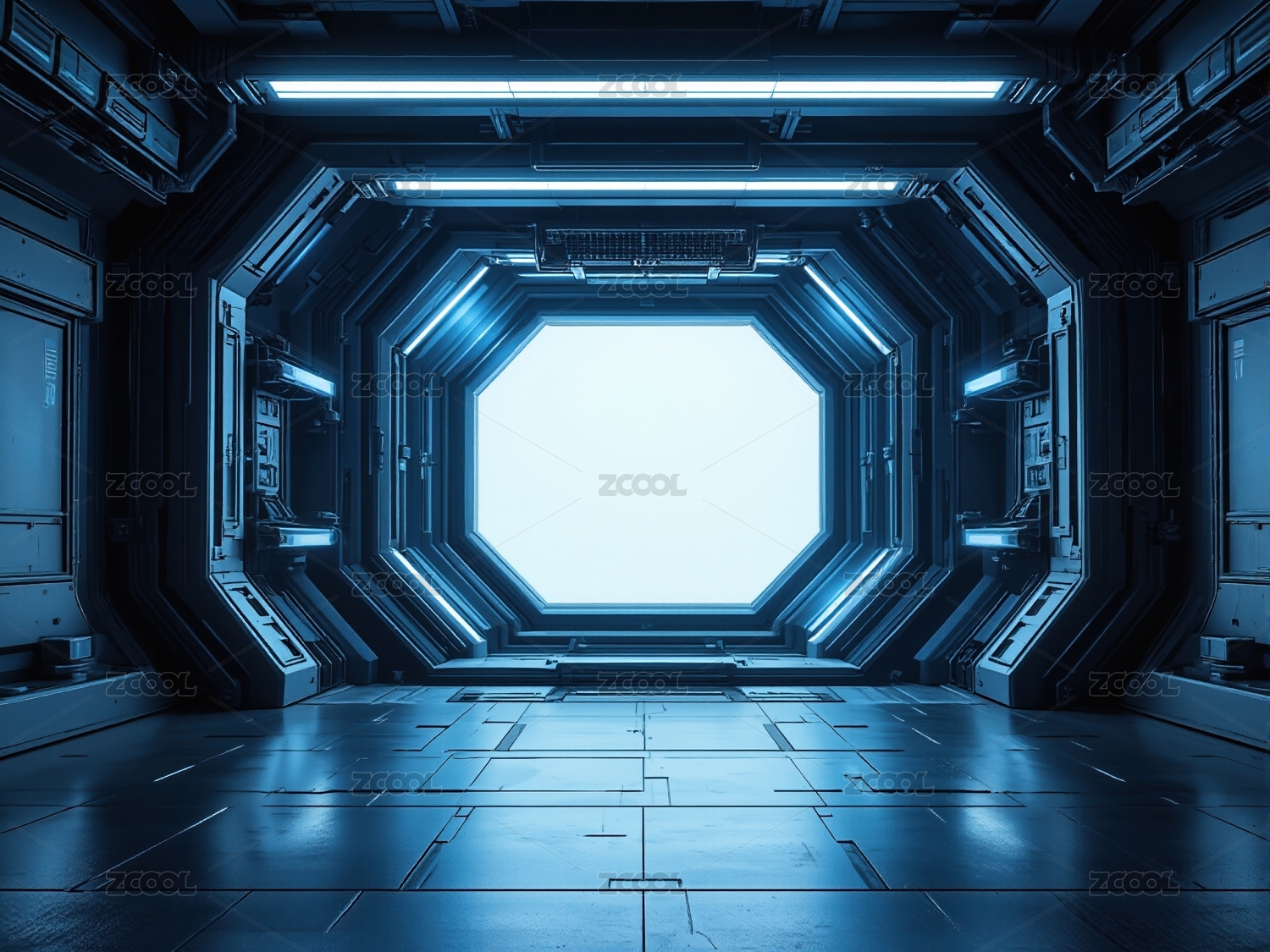 灯光,对称,蓝色,设计,空间,墙壁,光影,科技,未来,六边形