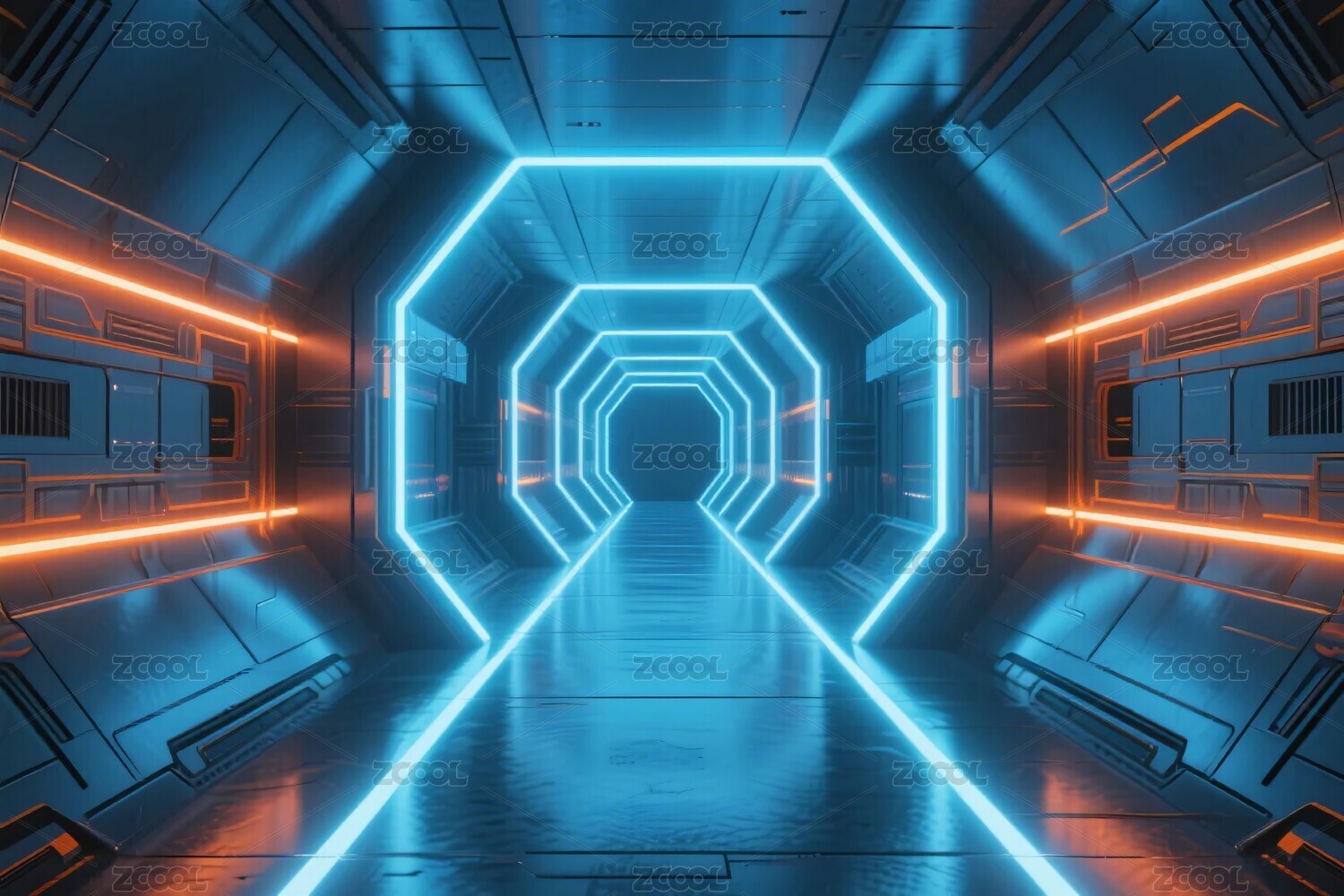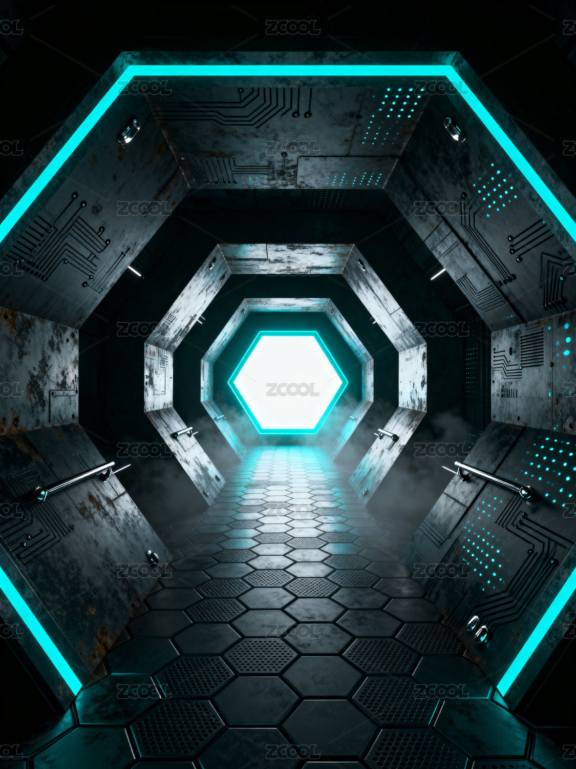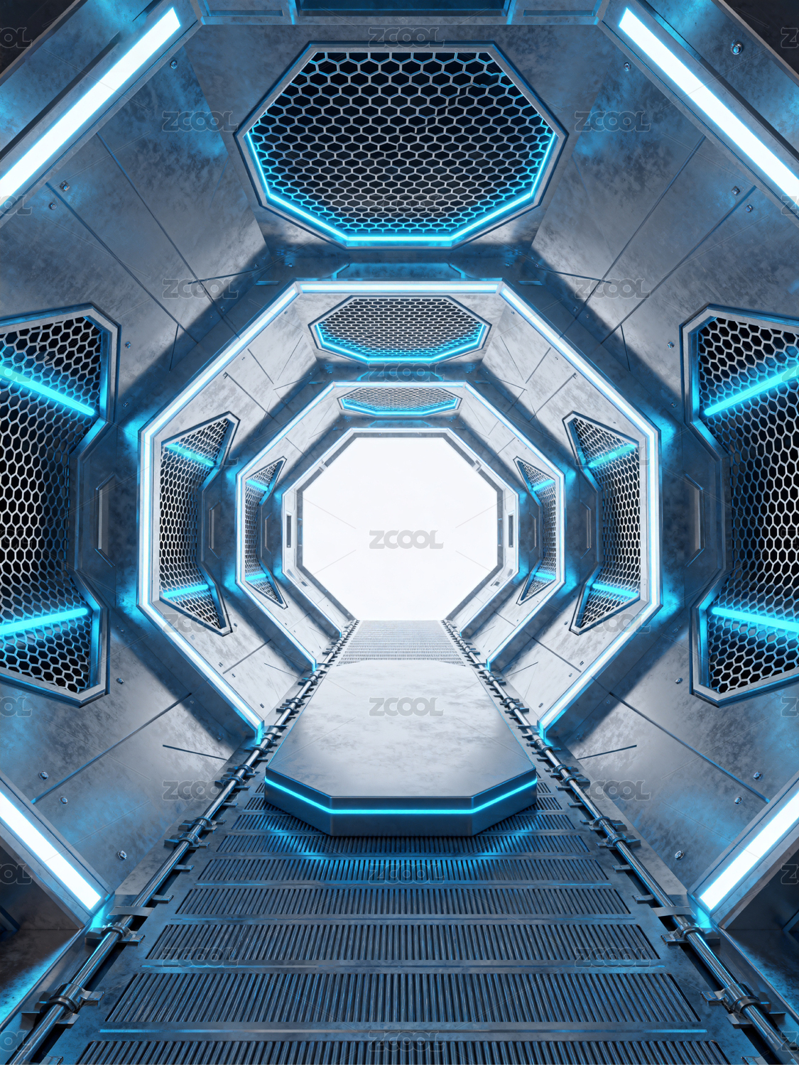 灯光,对称,蓝色,设计,空间,墙壁,光影,科技,未来,六边形