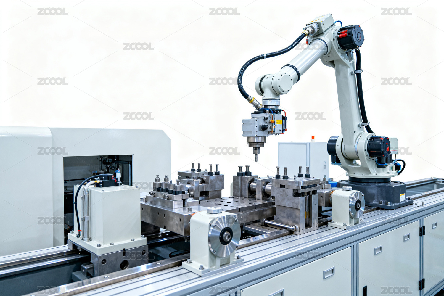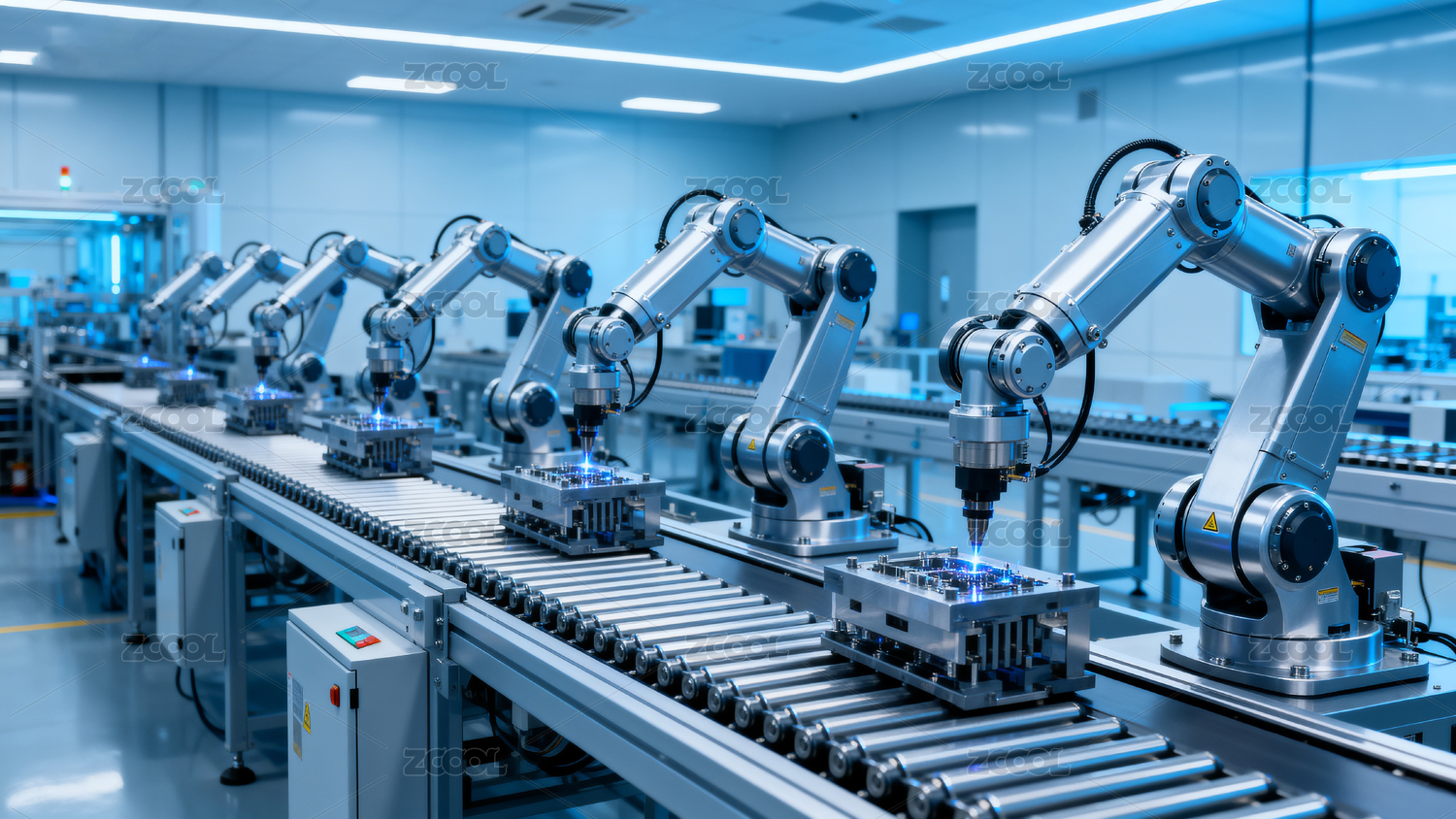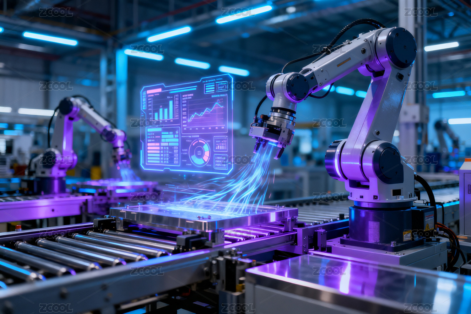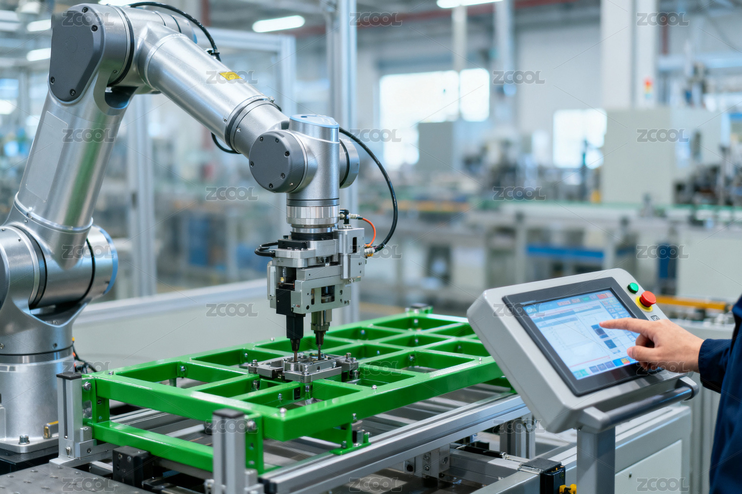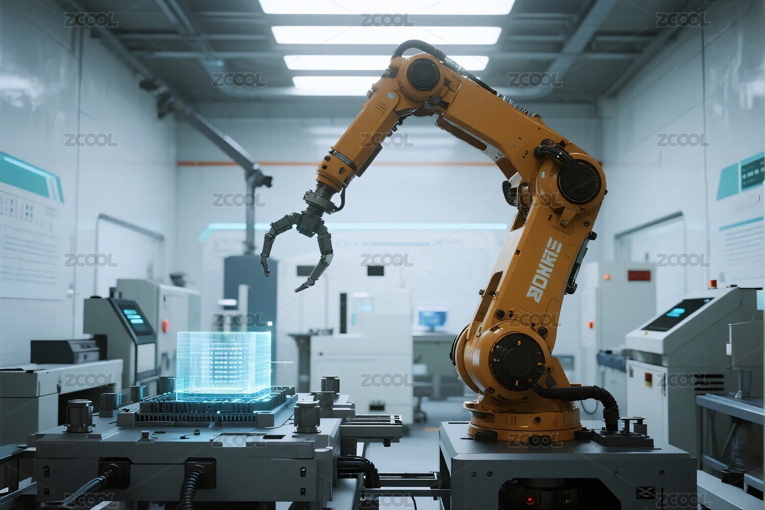 科技,设备,现代,旋转,工业,工人,机械臂,操作台,显示屏,灯光