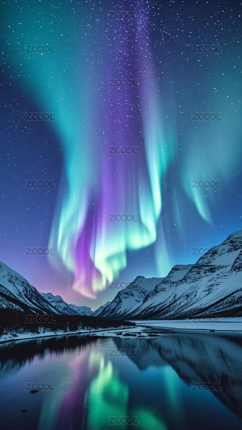 渐变,光影,梦幻,紫色,自然,极光,夜空,山脉,蓝绿,景色
