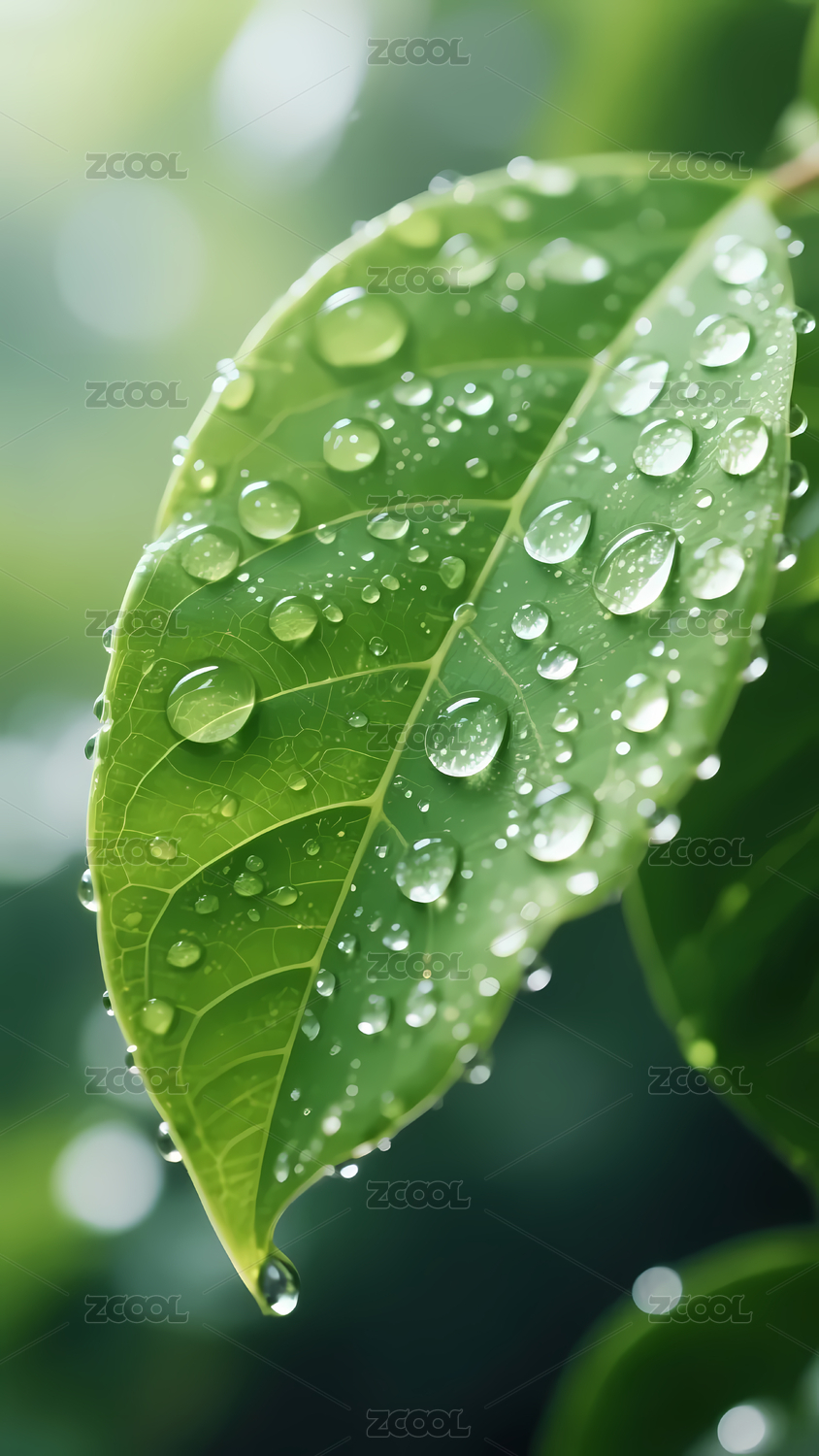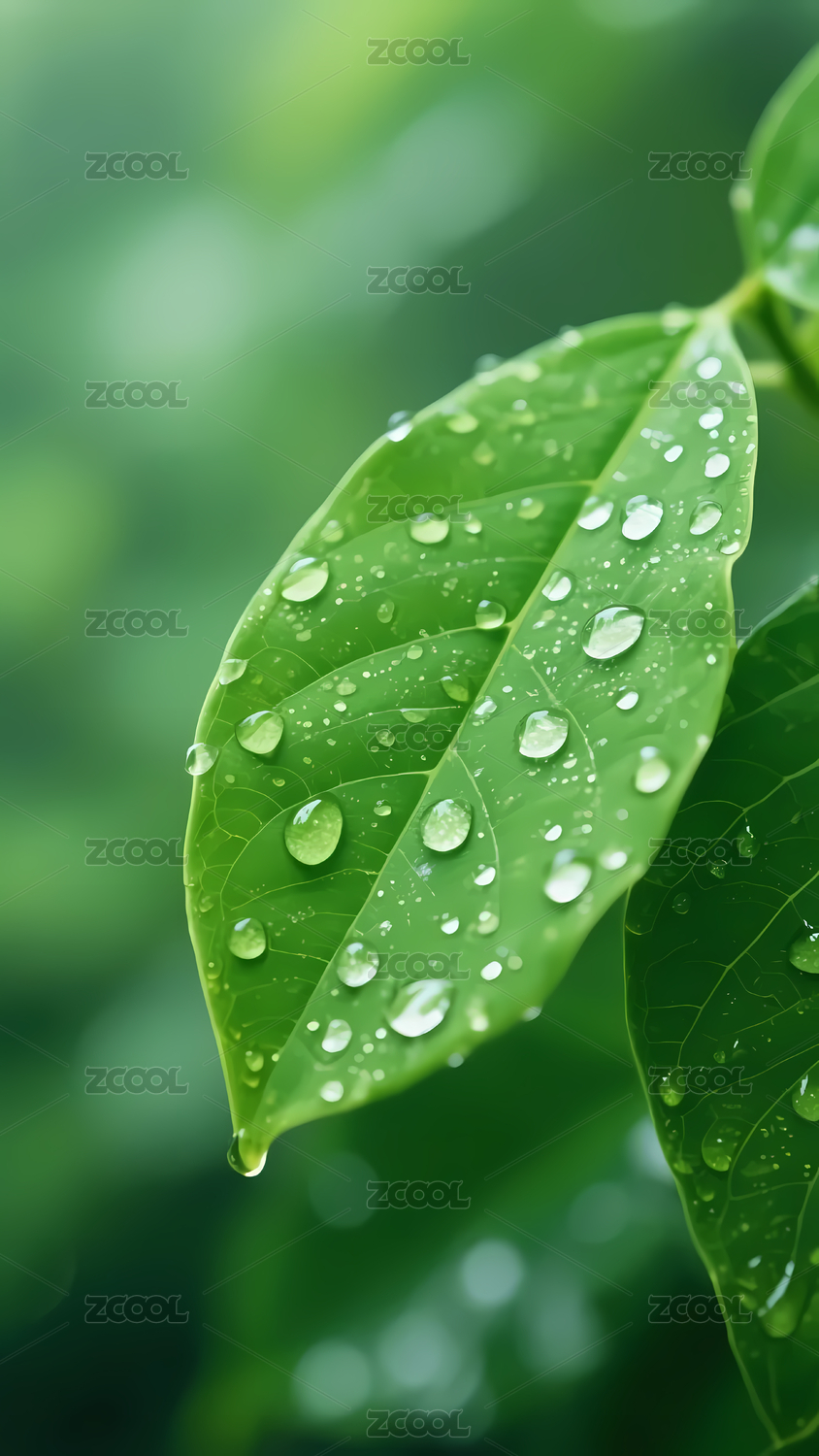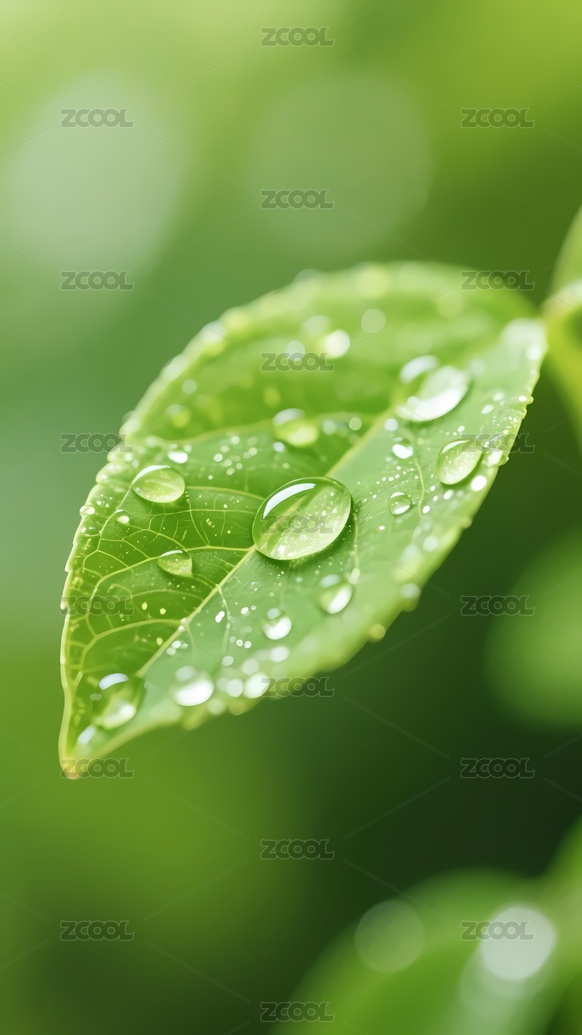 清新自然的带露绿叶