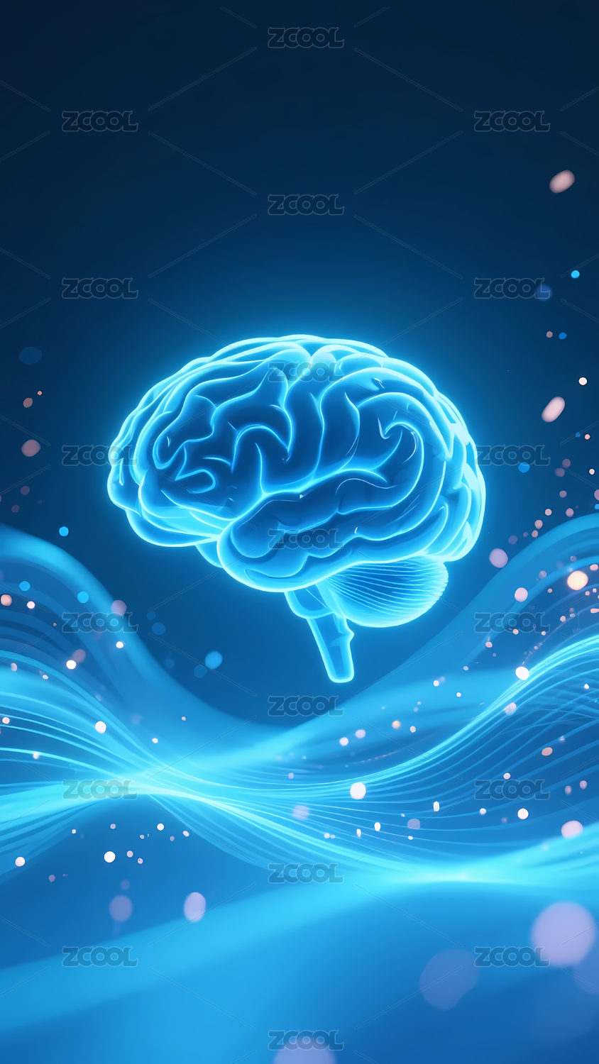 蓝色,抽象,神秘,深蓝,科技,未来,发光,轮廓,大脑,思维