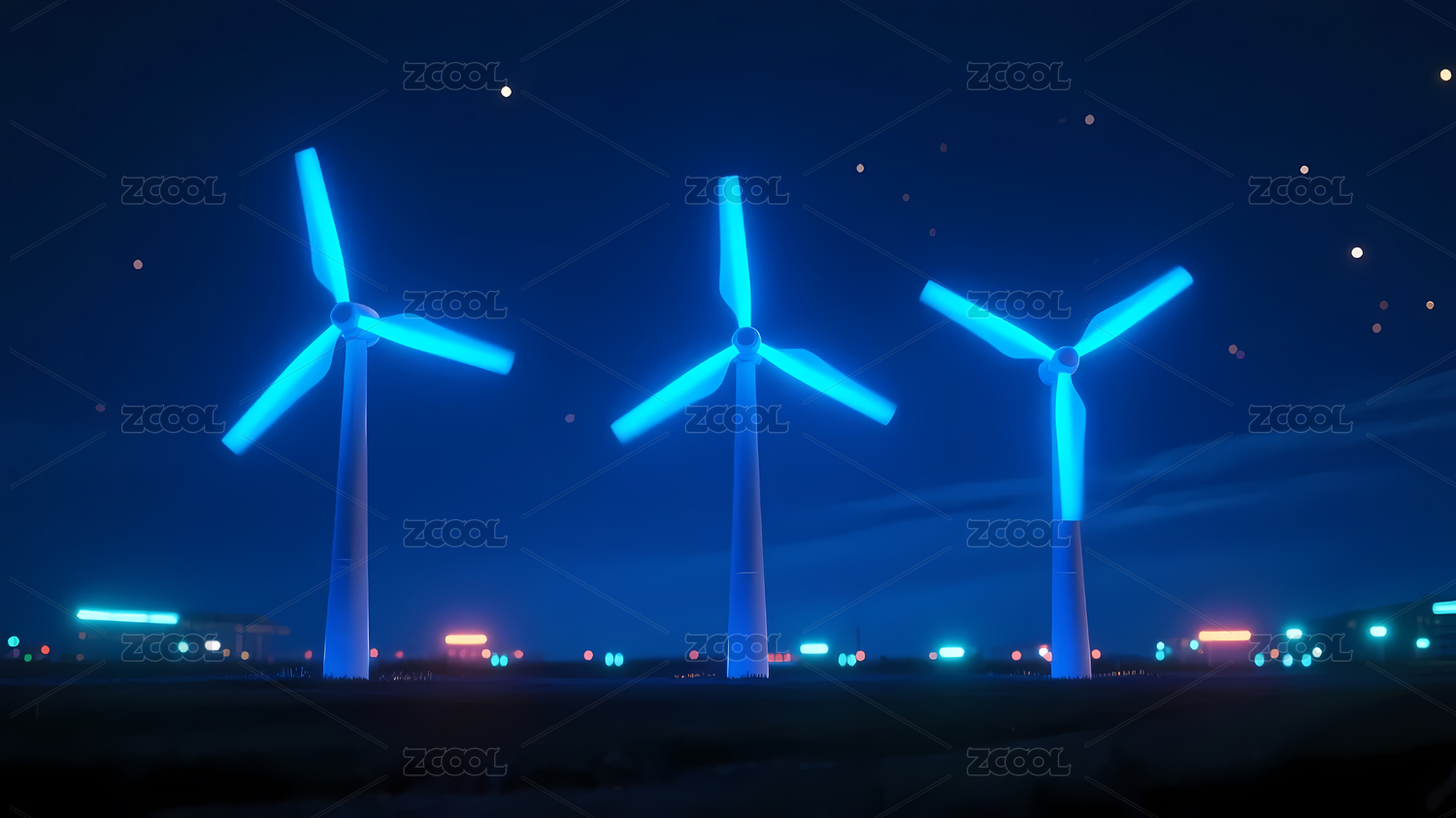 科技,蓝光,城市,自然,现代,深蓝,夜空,光芒,风力,发电