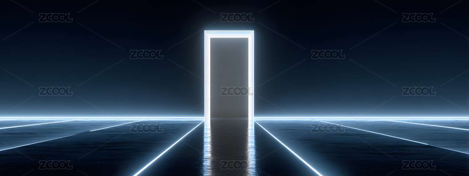 蓝色灯光渲染空间