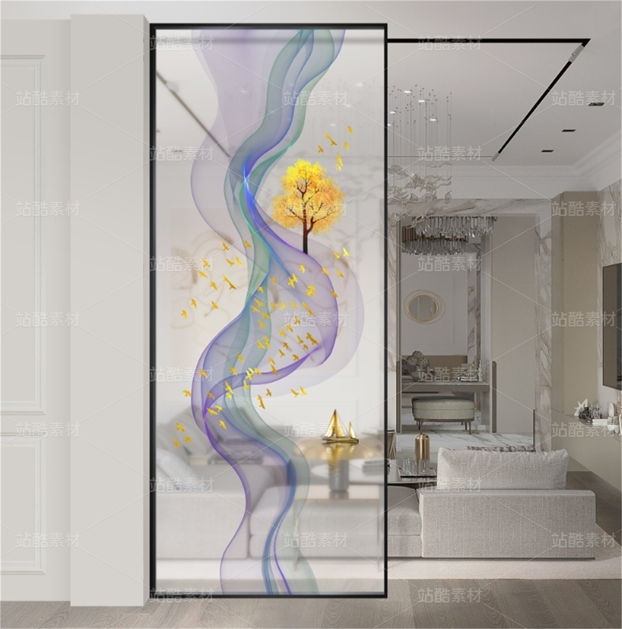 曲线山水 飘带山水 抽象山水 适用于家装,酒店,文化场所等,用于做:背景墙、隔断、移门,屏风、玄关。高清分层图可以用UV打印。