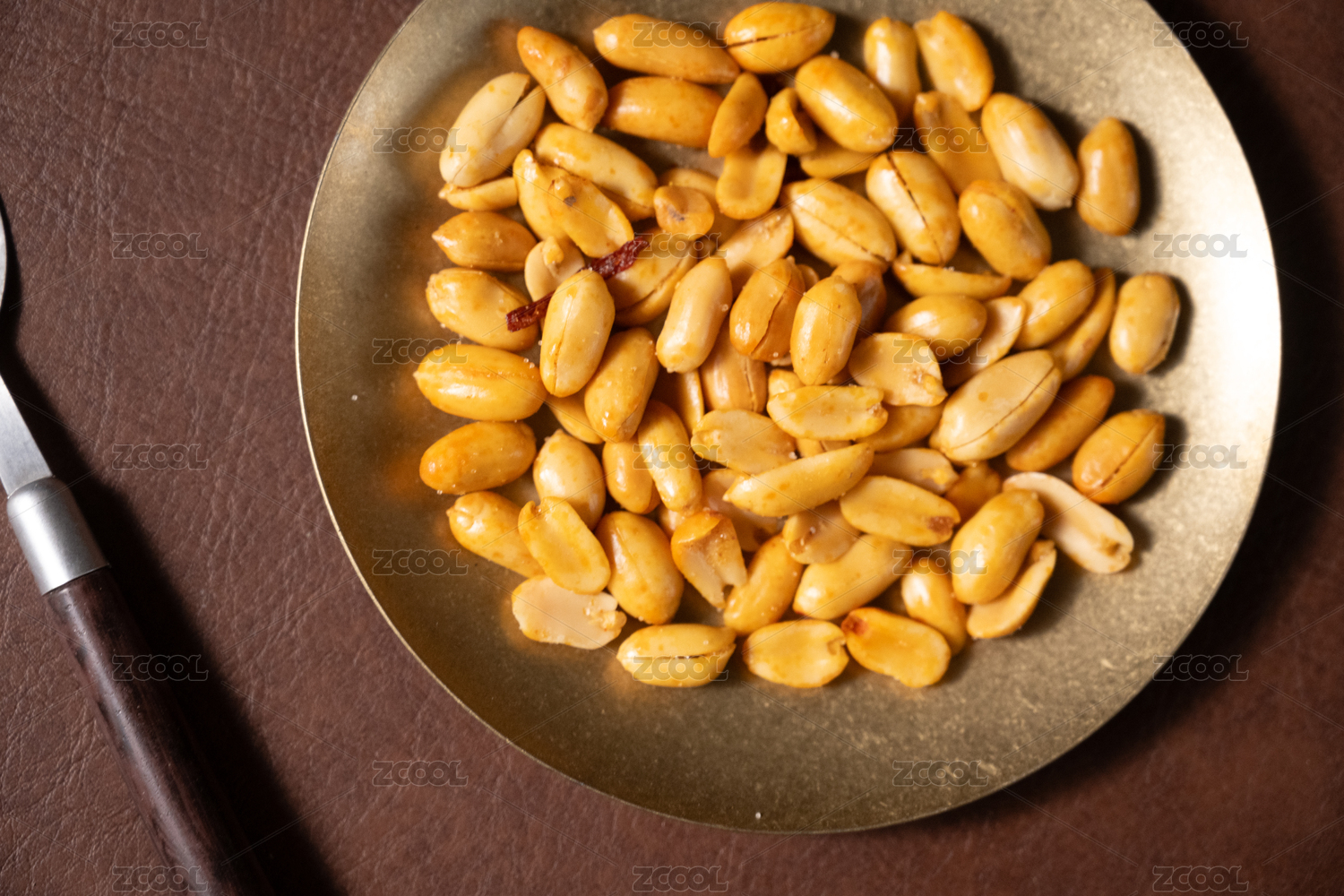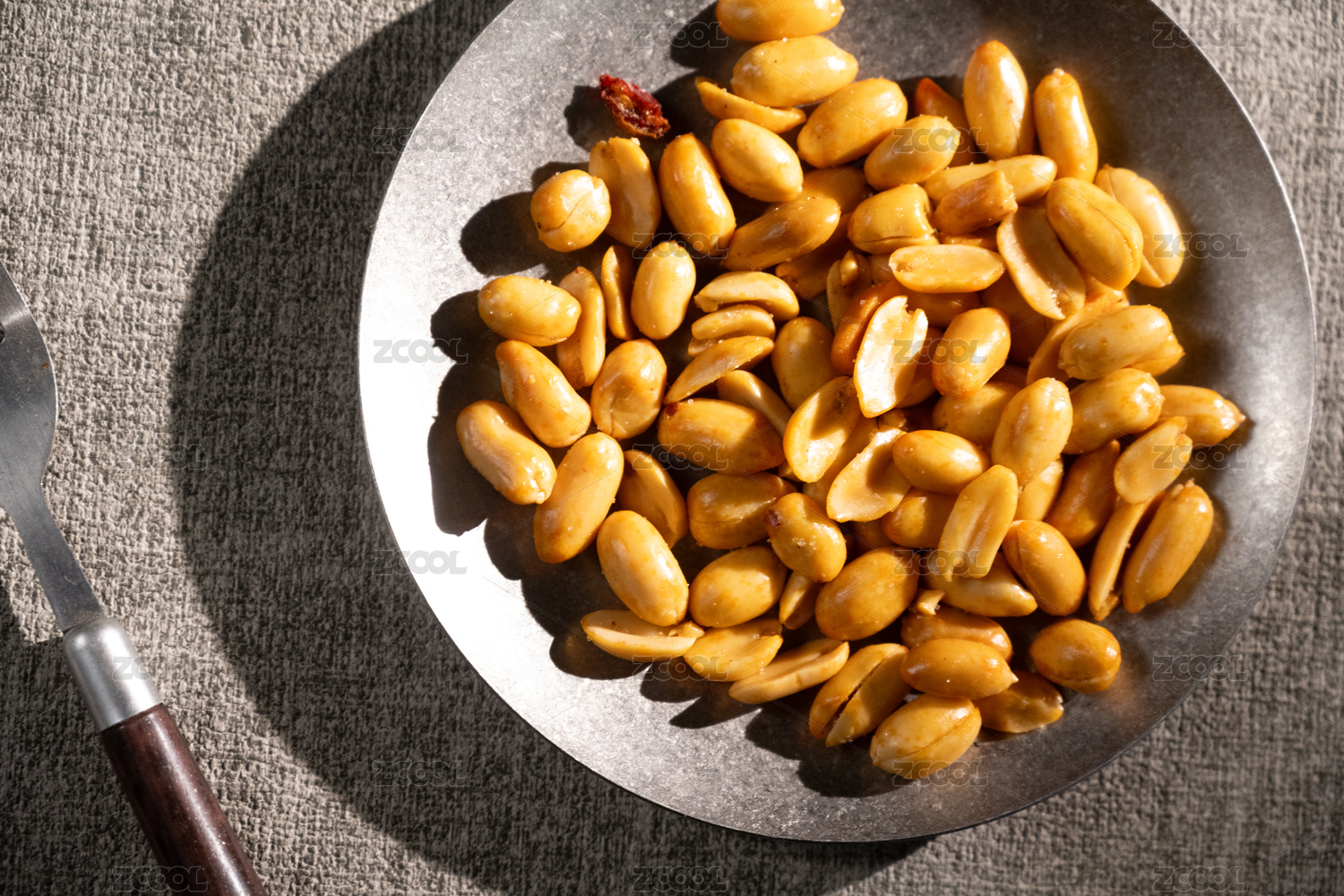 桌面上的盘子里的美味可口的酒鬼花生