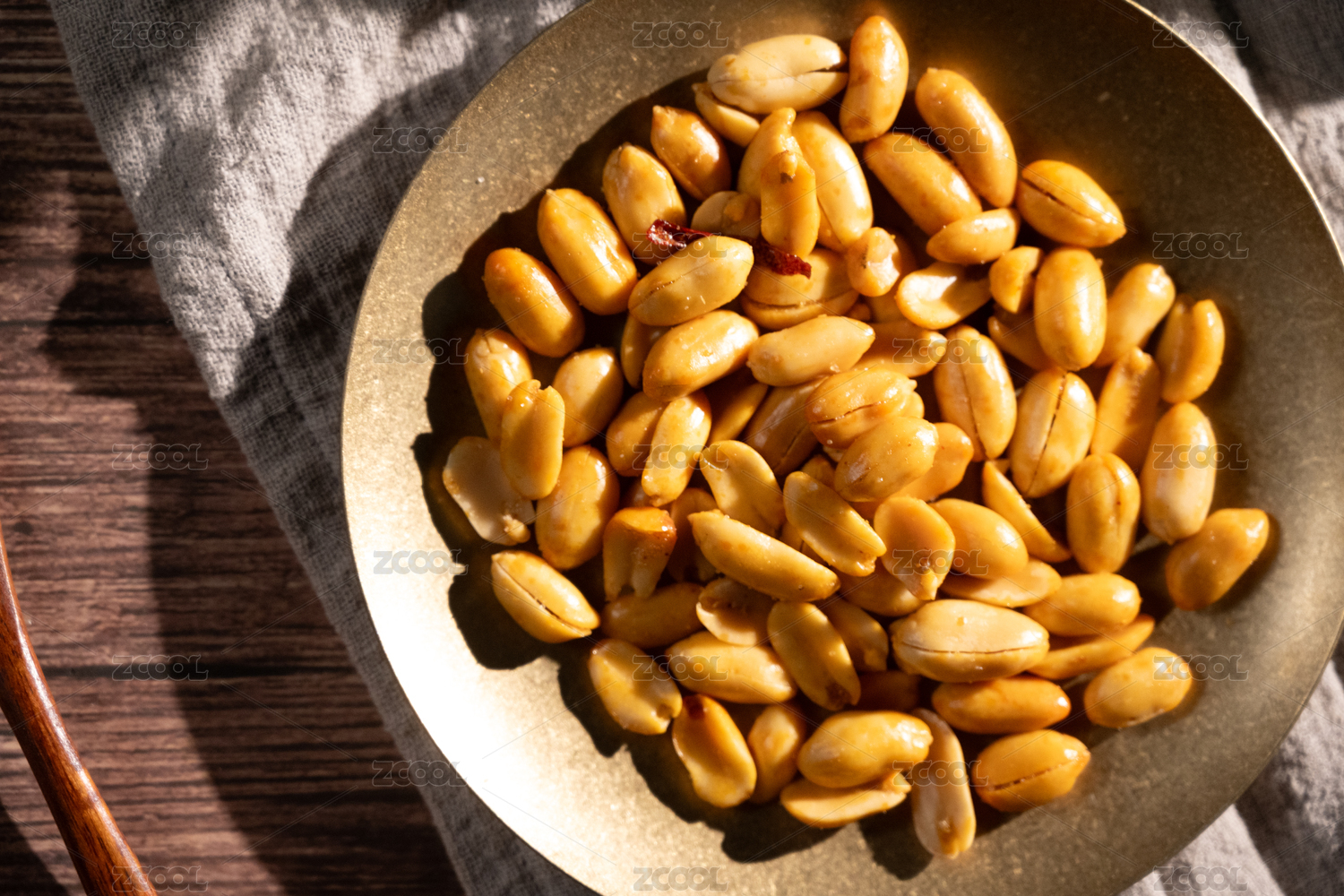 桌面上的盘子里的美味可口的酒鬼花生