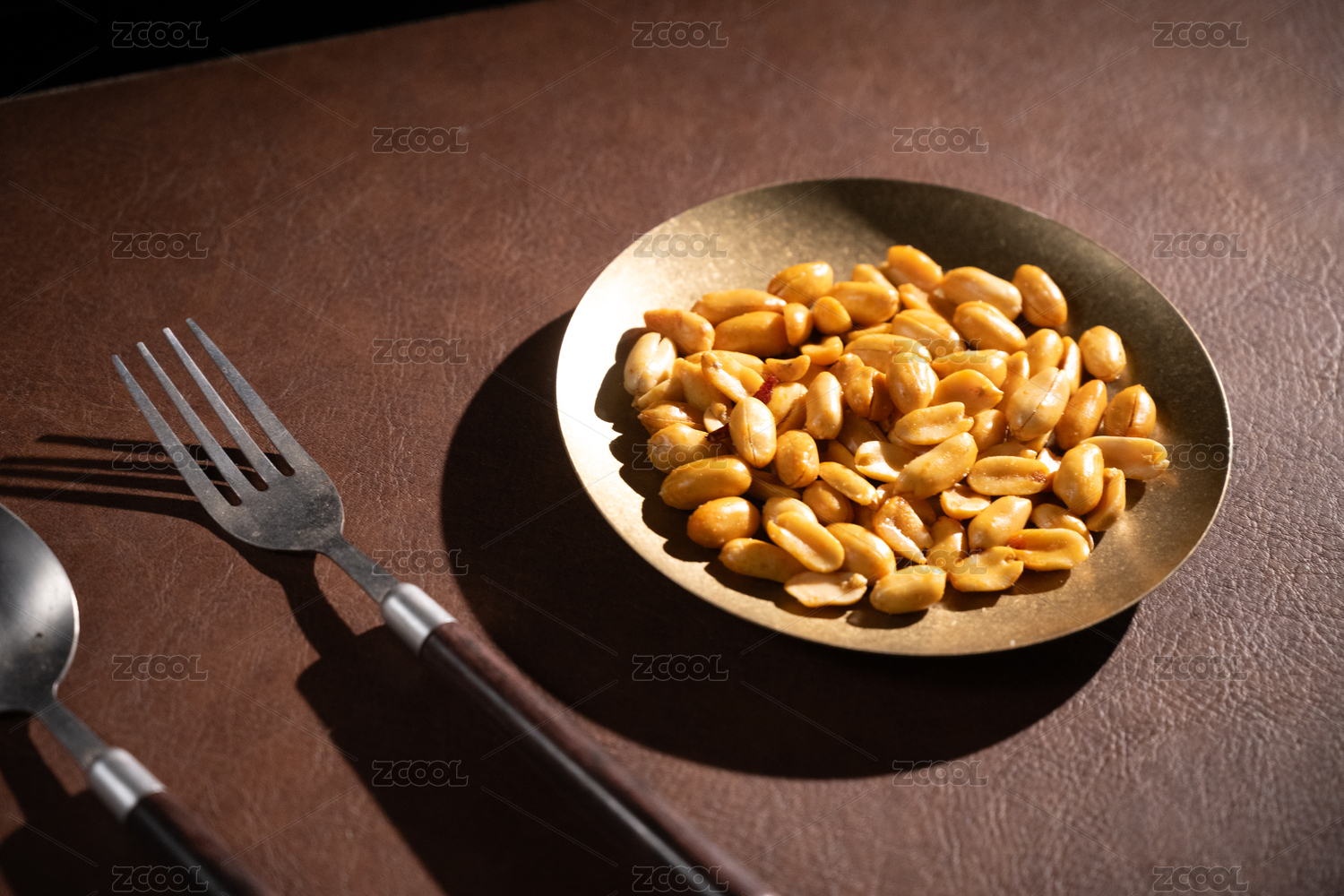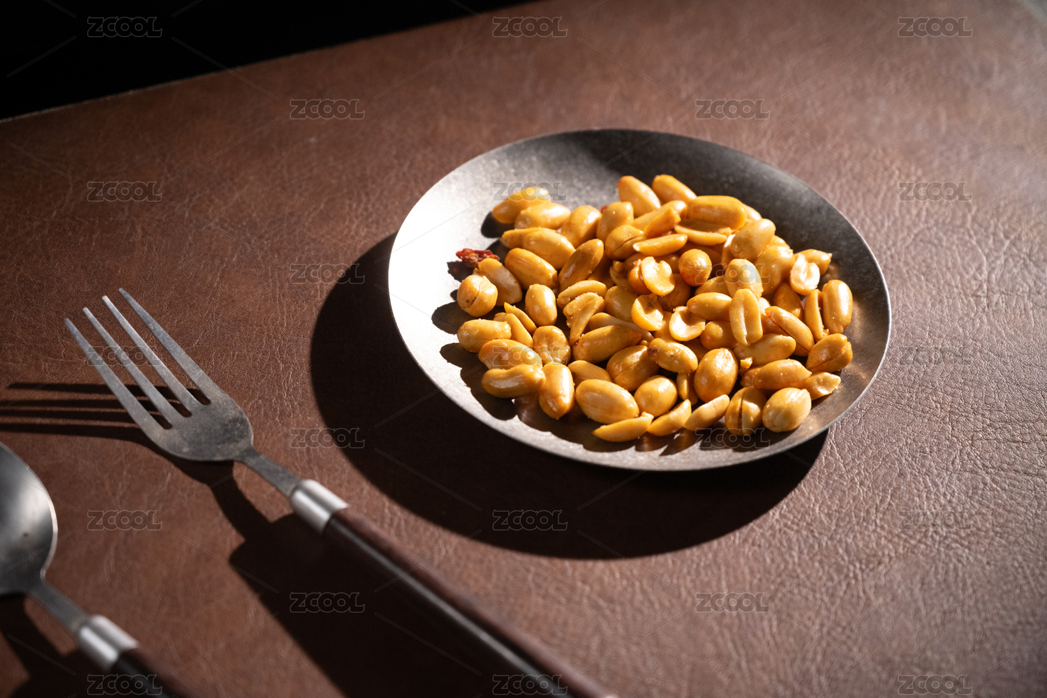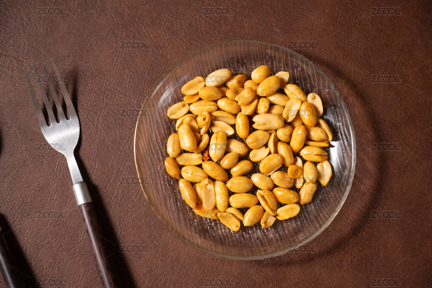 桌面上的盘子里的美味可口的皱皮花生