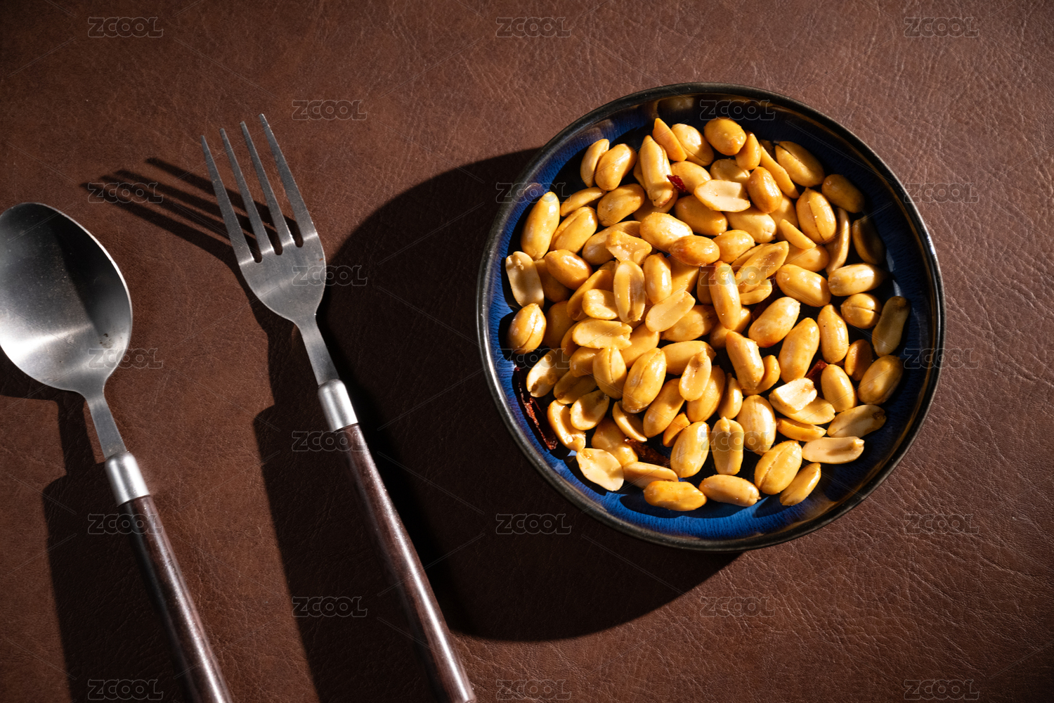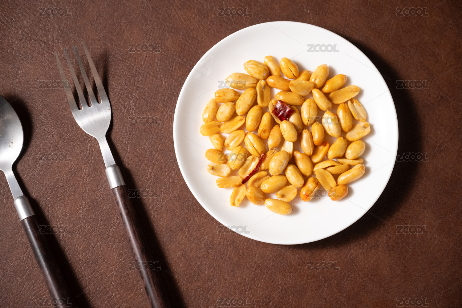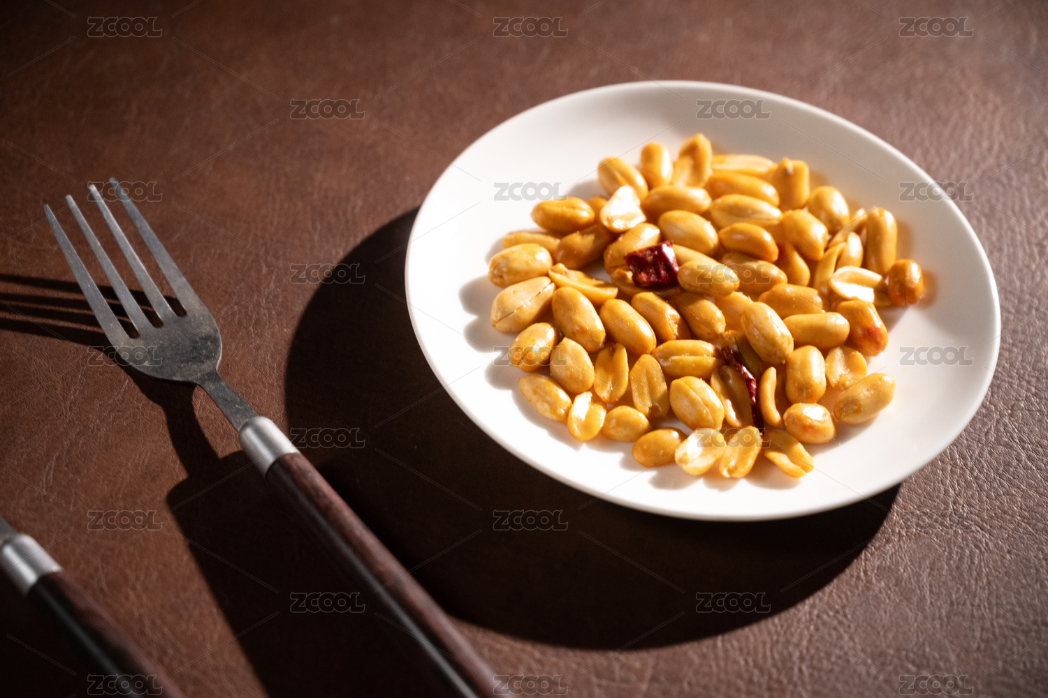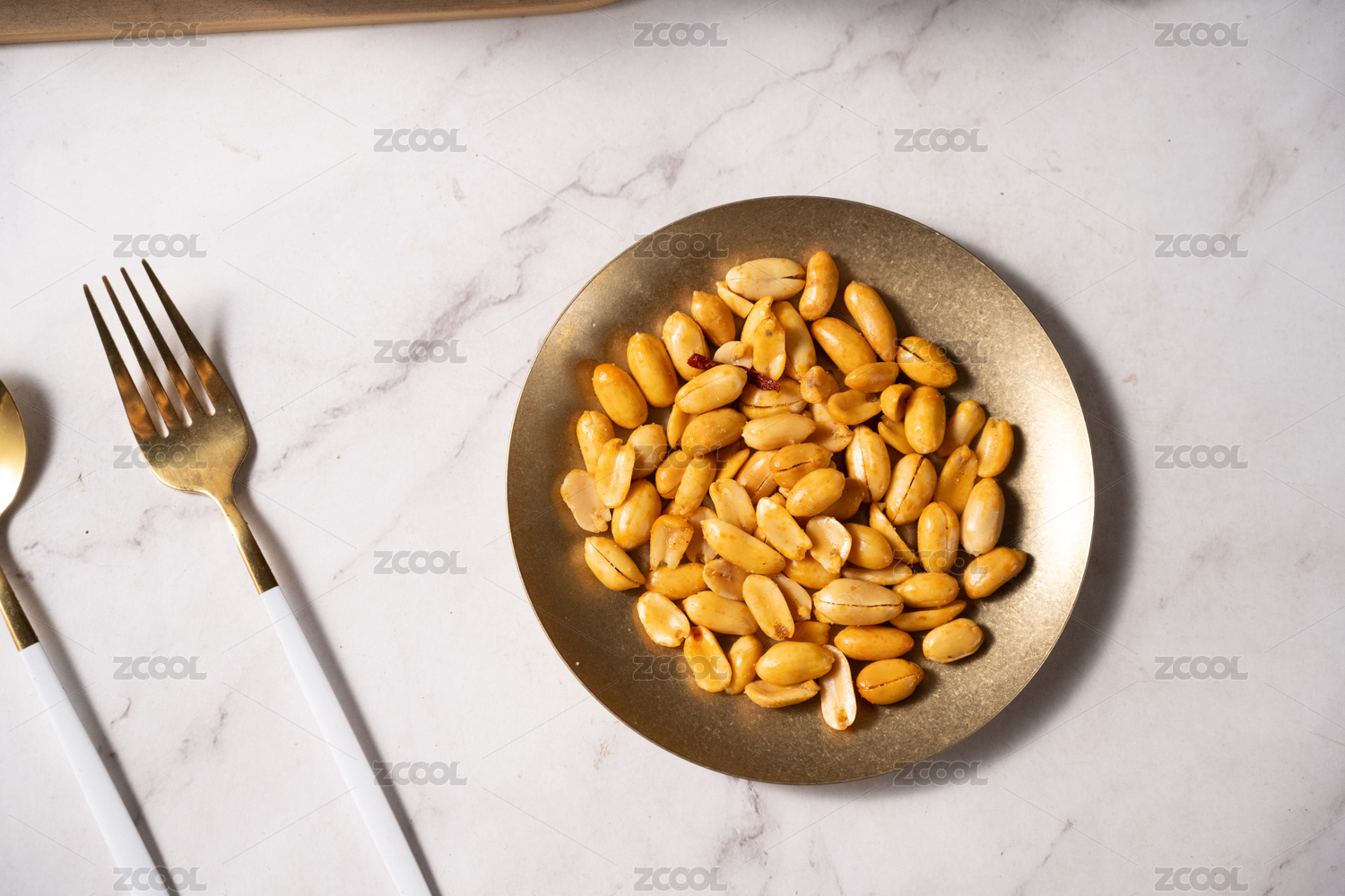 桌面上的盘子里的美味可口的皱皮花生