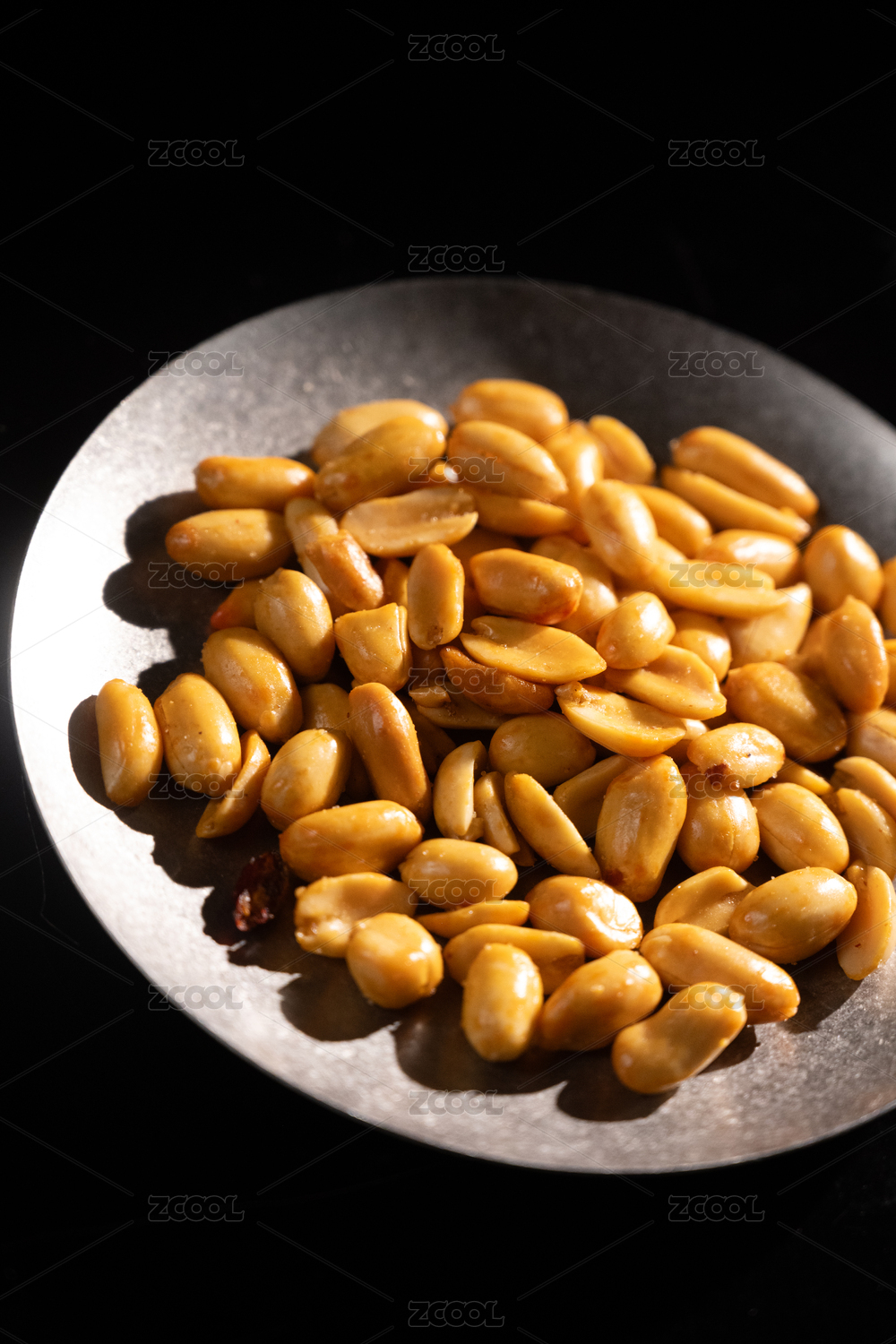 桌面上的盘子里的美味可口的酒鬼花生