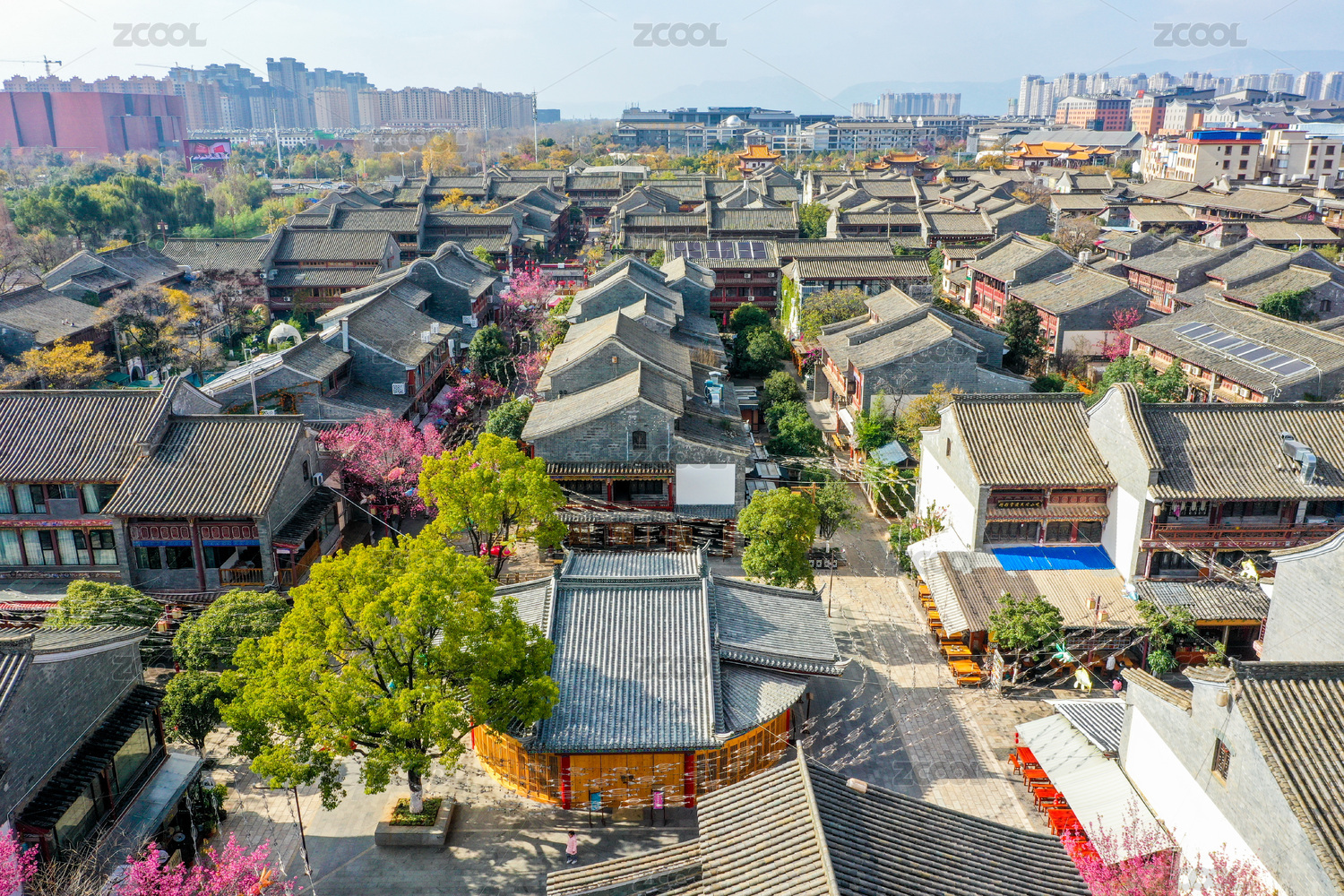 航拍中国云南昆明官渡古镇历史建筑群