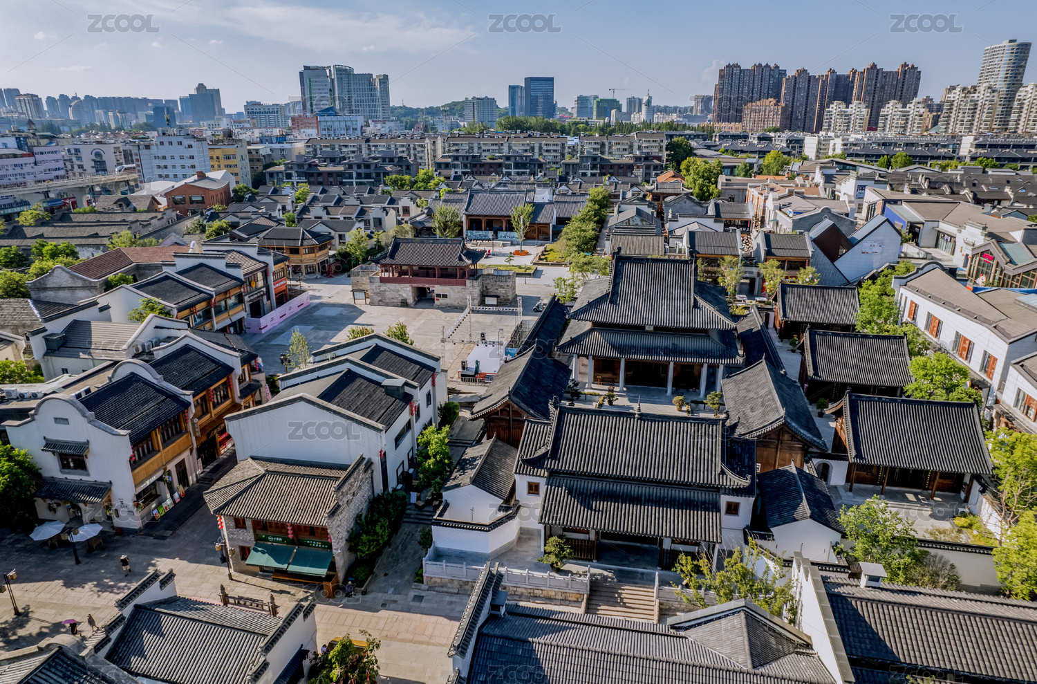 夏日水晶天下的芜湖古城风光航拍