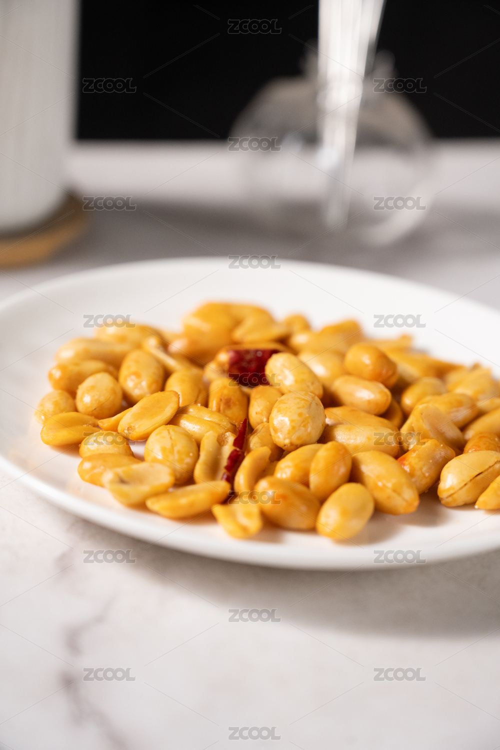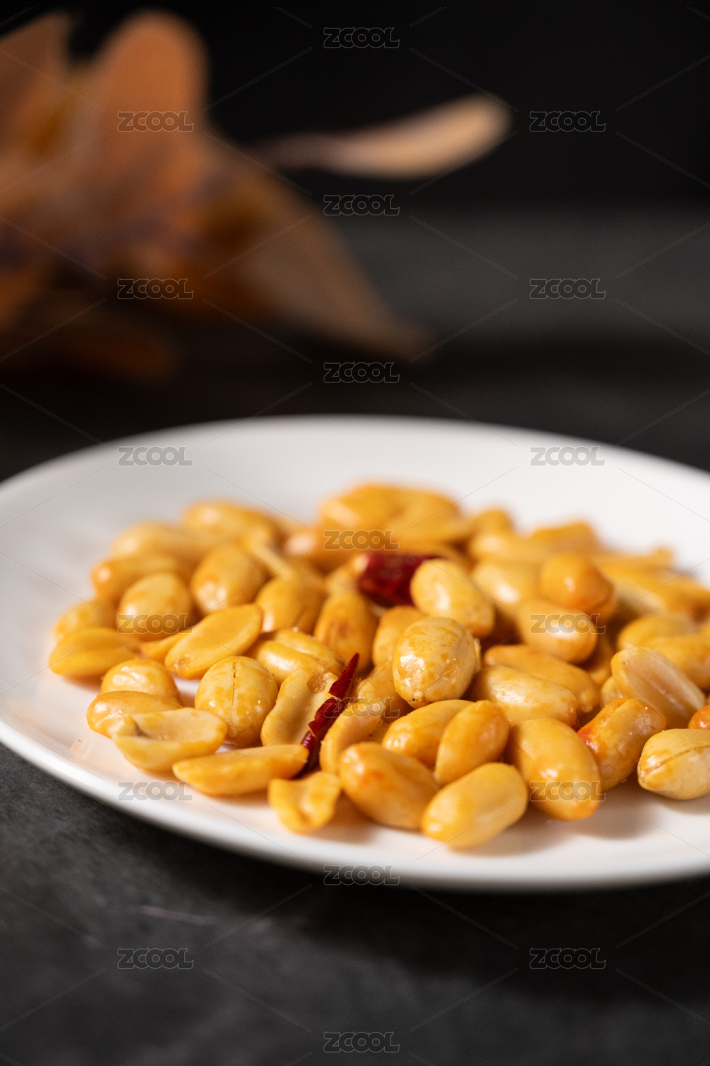 桌面上的盘子里的美味可口的酒鬼花生