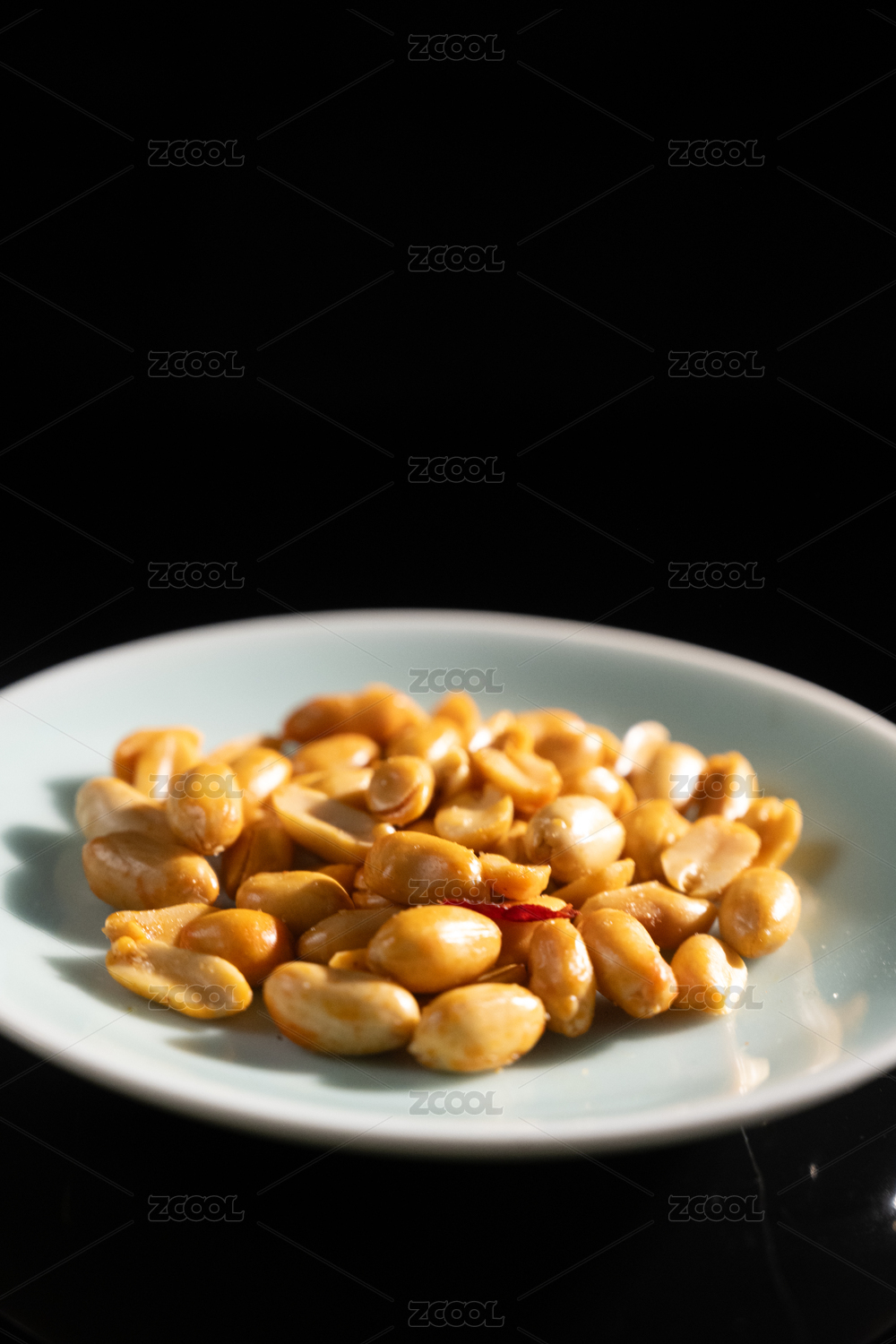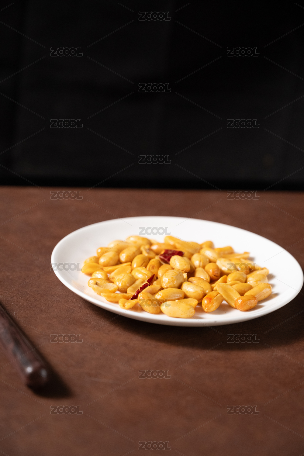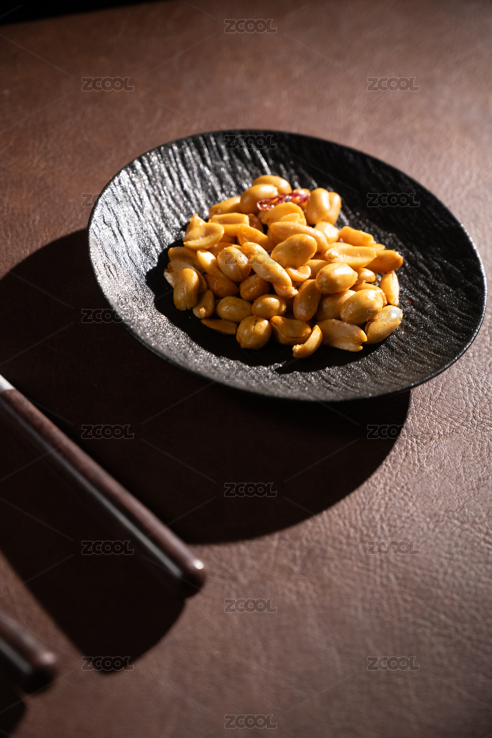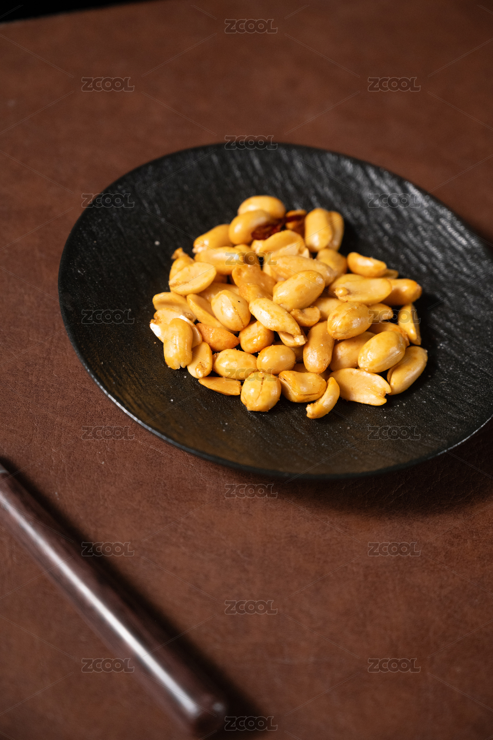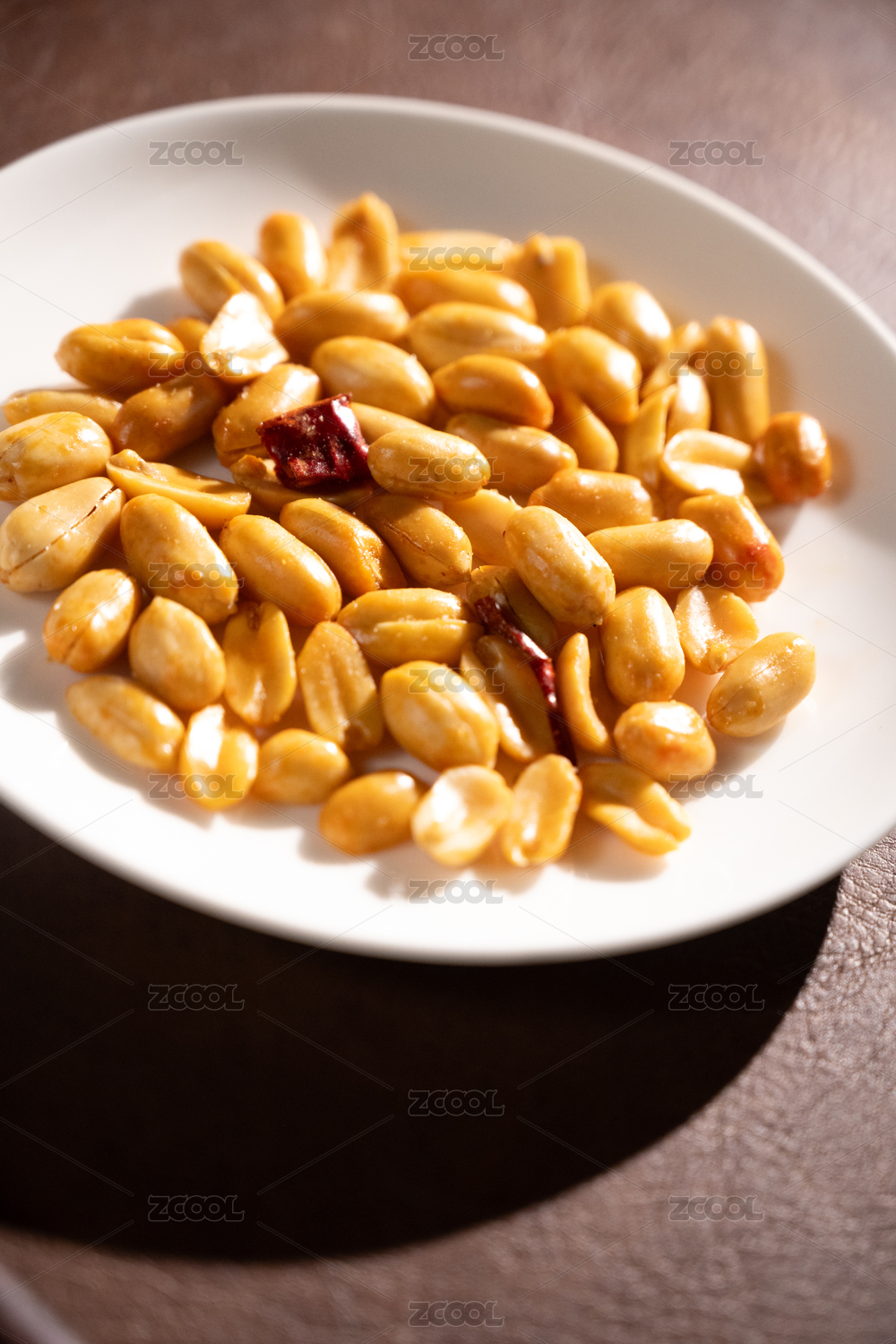 桌面上的盘子里的美味可口的皱皮花生