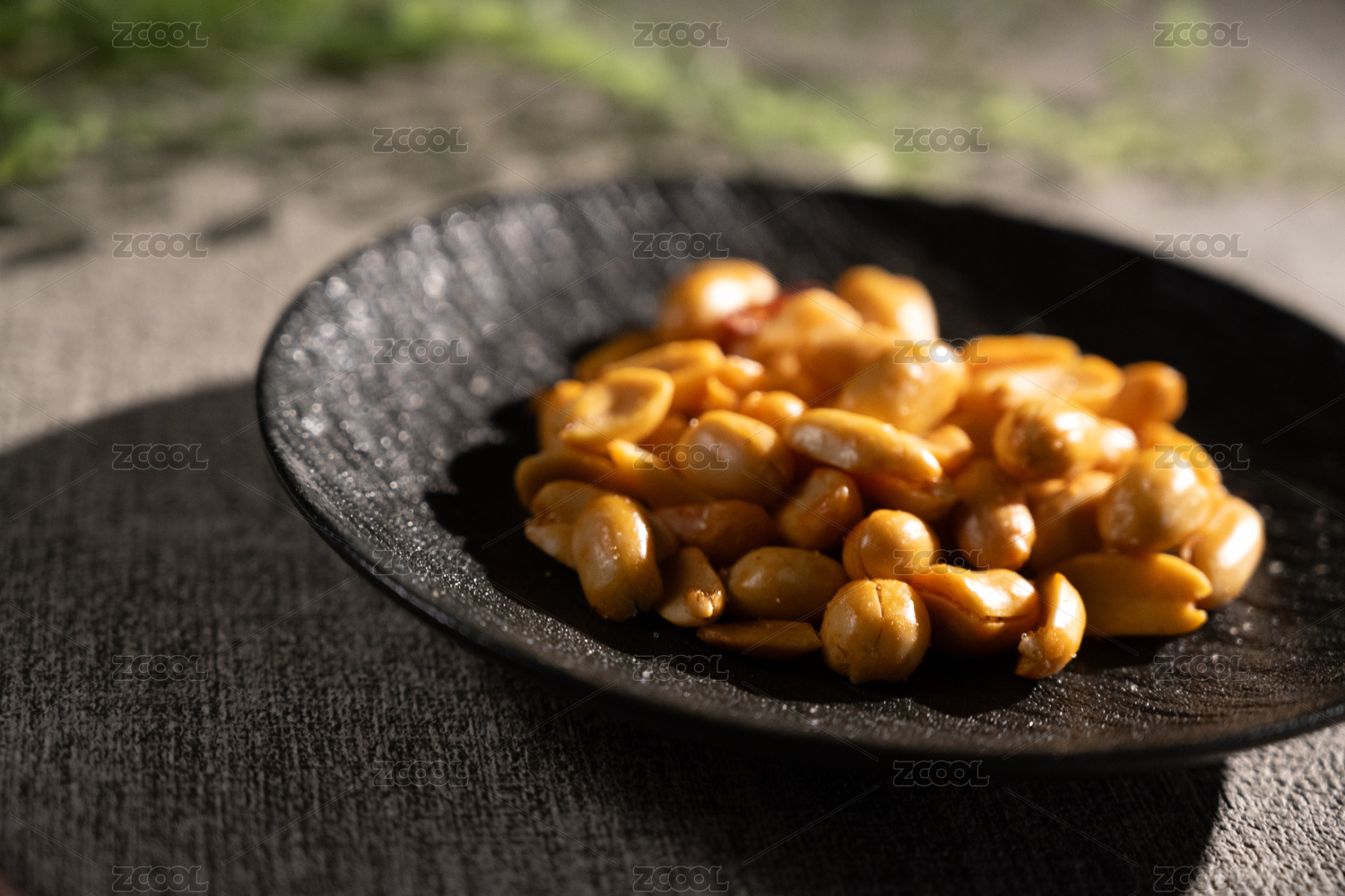 桌面上的盘子里的美味可口的酒鬼花生