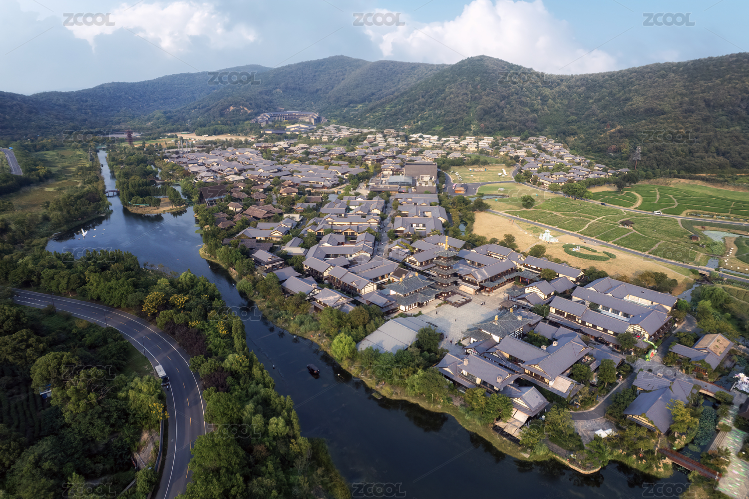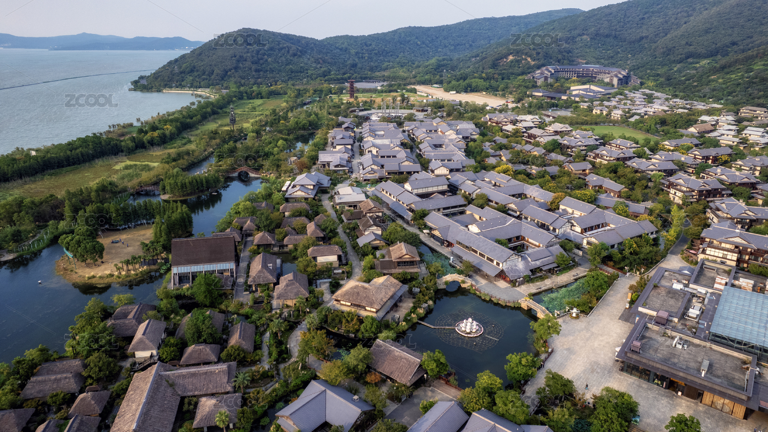 航拍无锡拈花湾小镇自然建筑风光