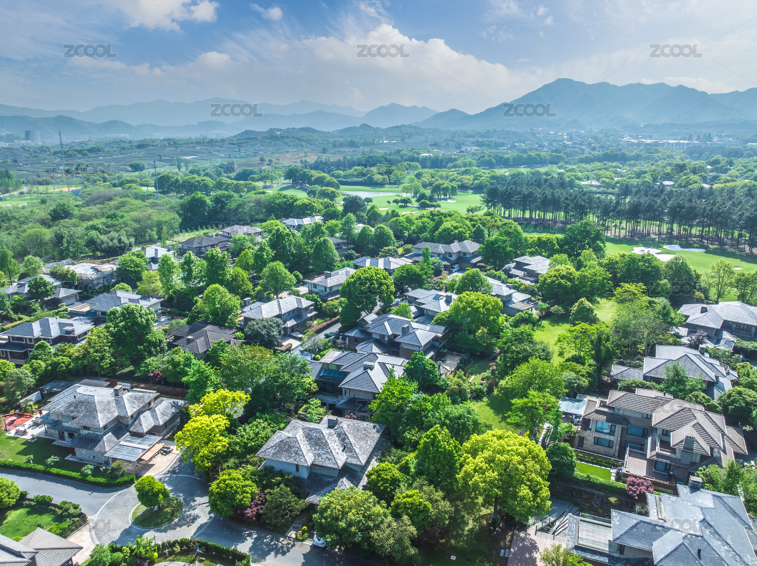 别墅建筑群和森林自然风景