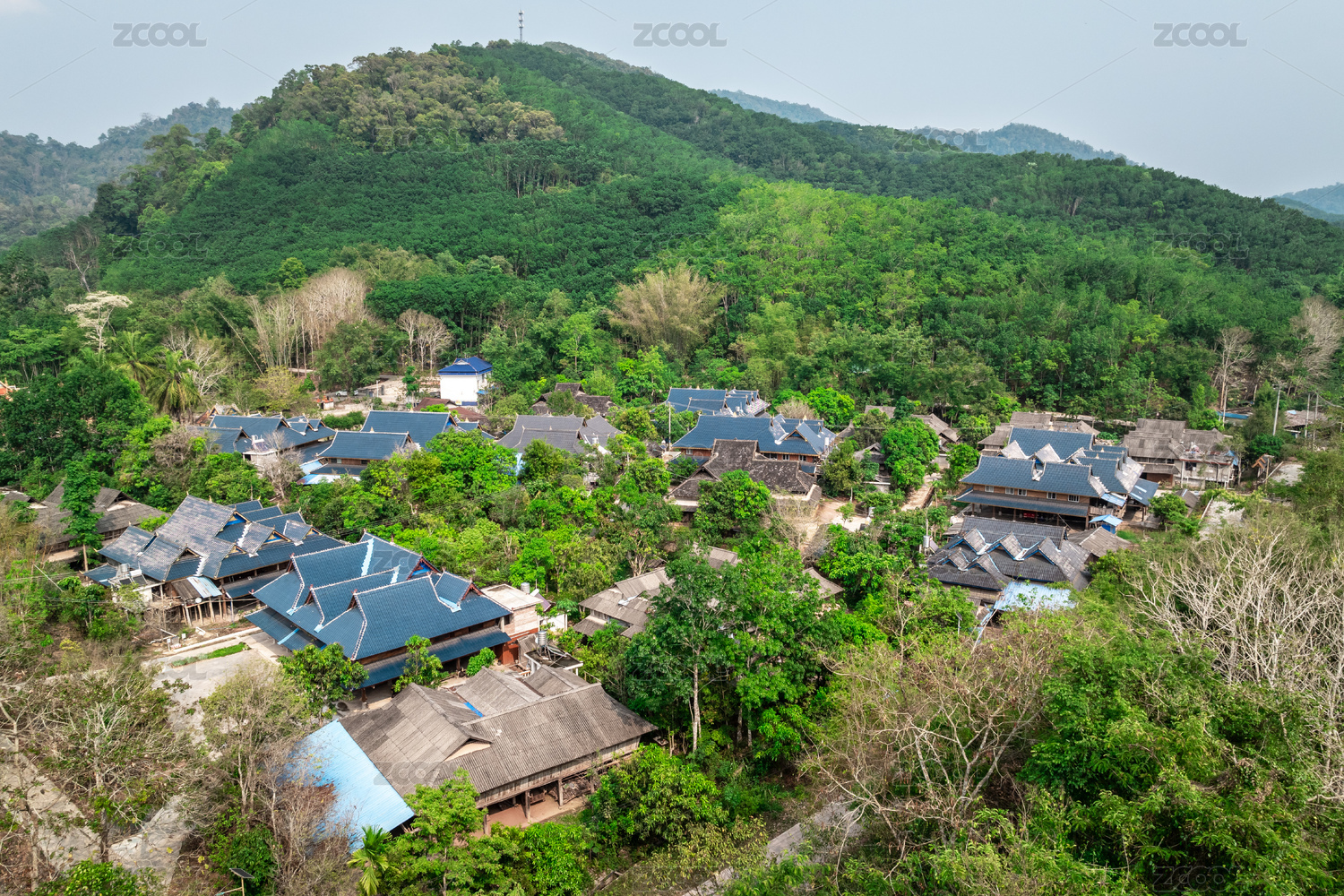 航拍拈花湾旅游风情小镇全景图