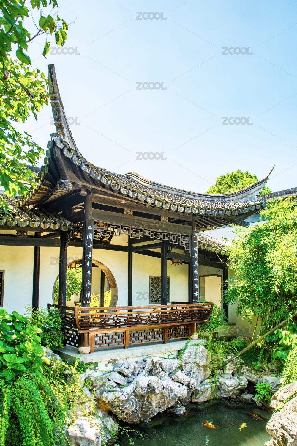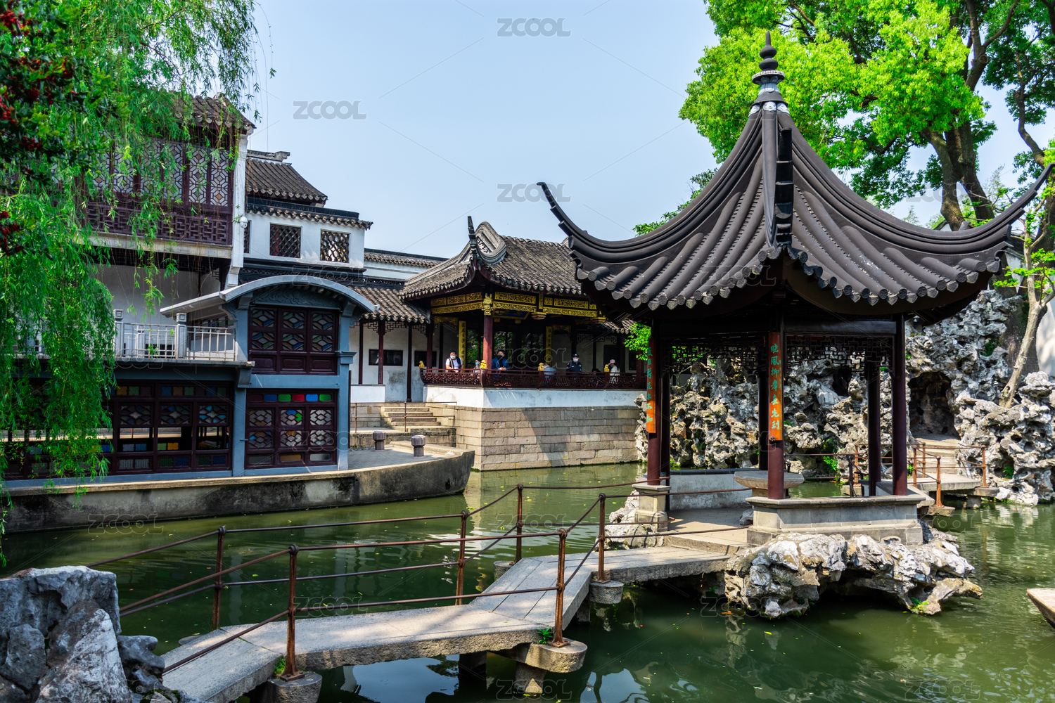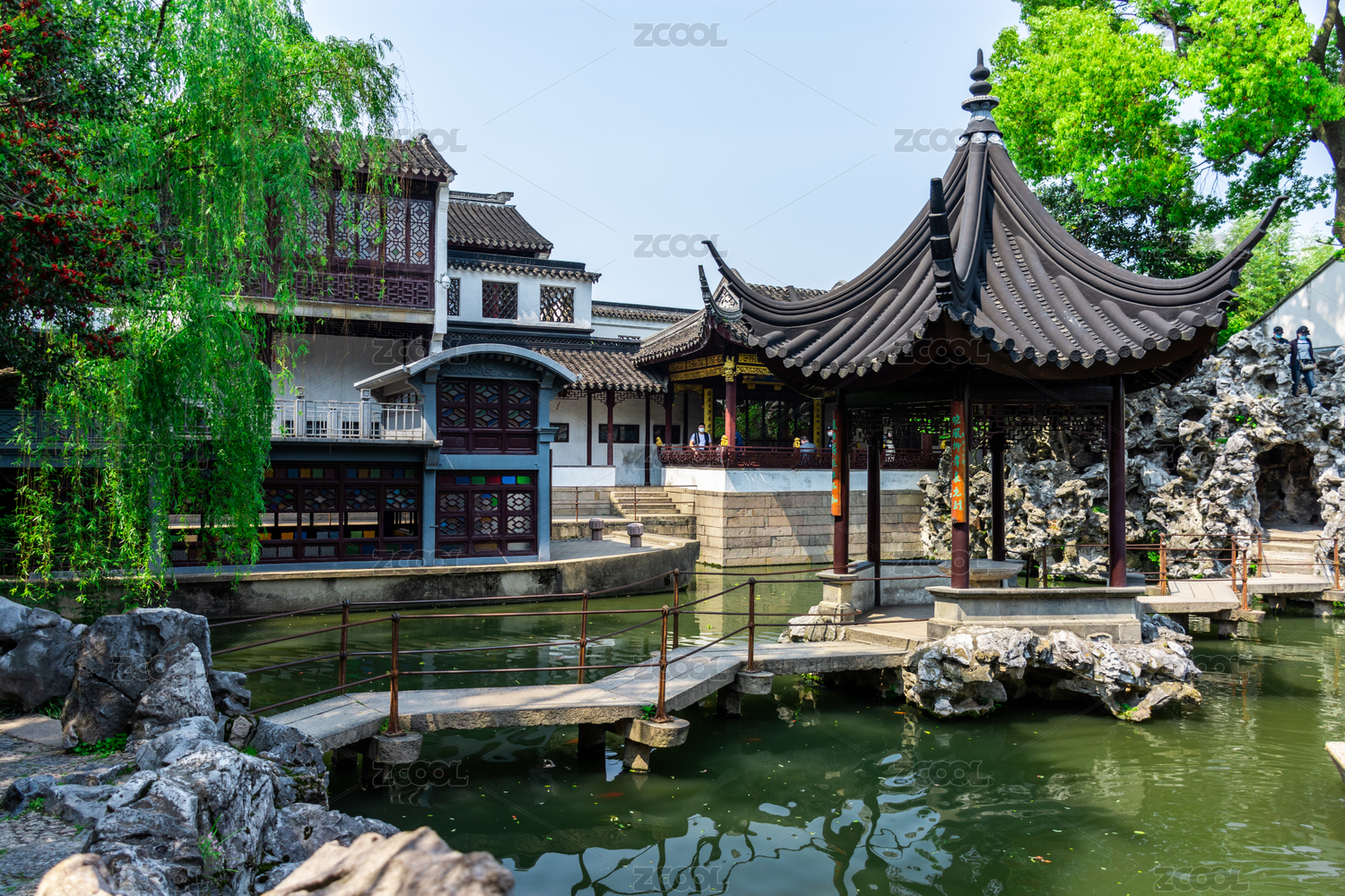 中国苏州同里古典园林亭台楼阁假山白天高清大图