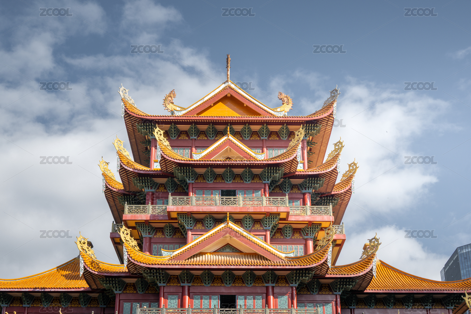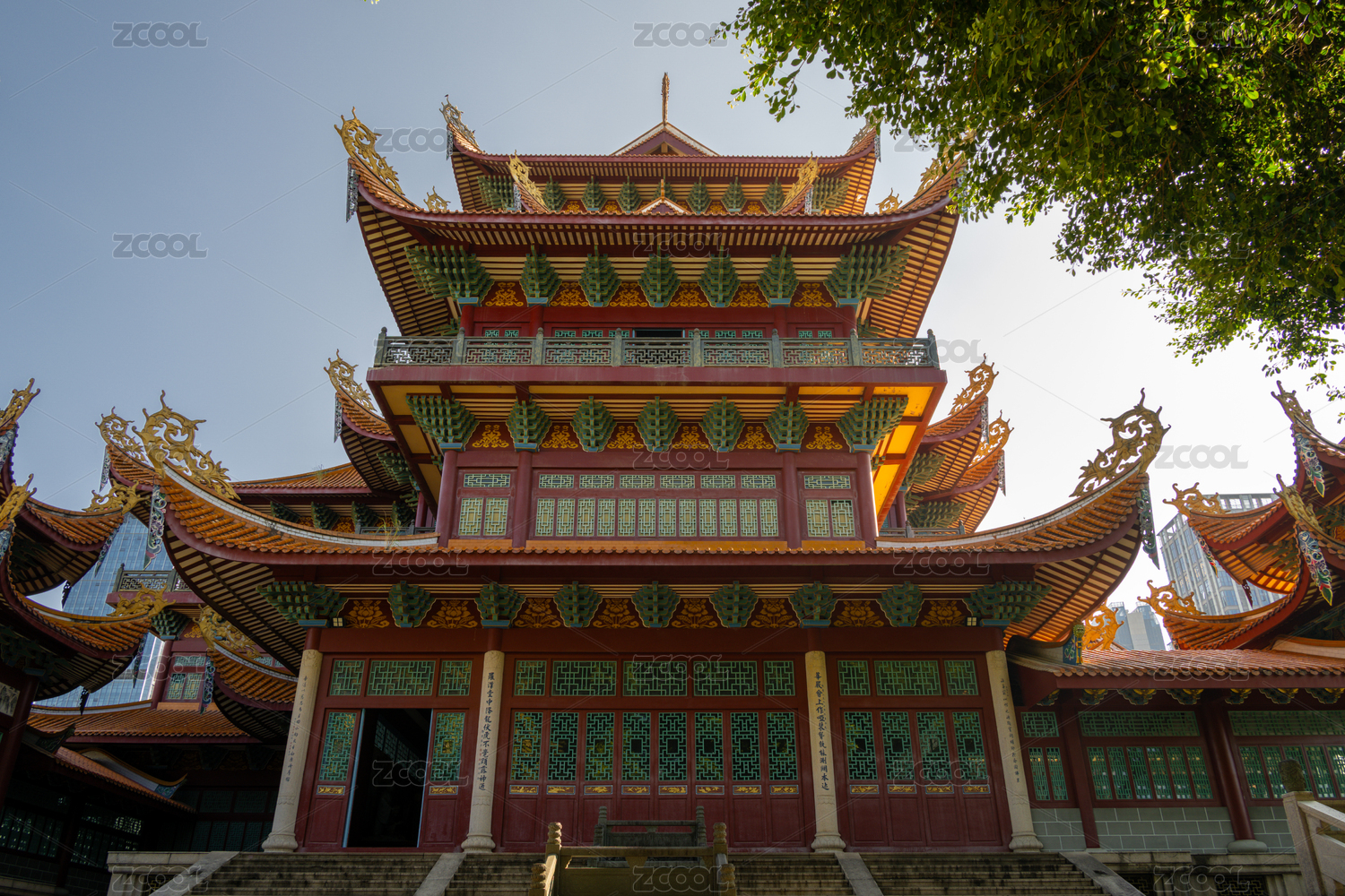福建省福州市西禅寺传统中式建筑与现代高楼