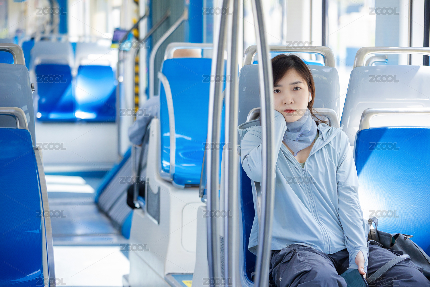 女士,公交车,坐着,帽子,休闲装,公共交通,车内,夏季穿搭,乘客,日常出行