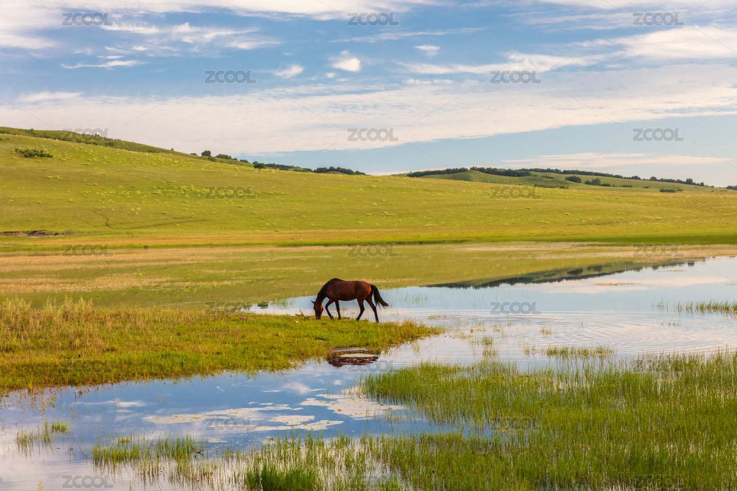 中国,乌兰布统,内蒙古,夏天,大自然,天空,室外,平原,水域,水面