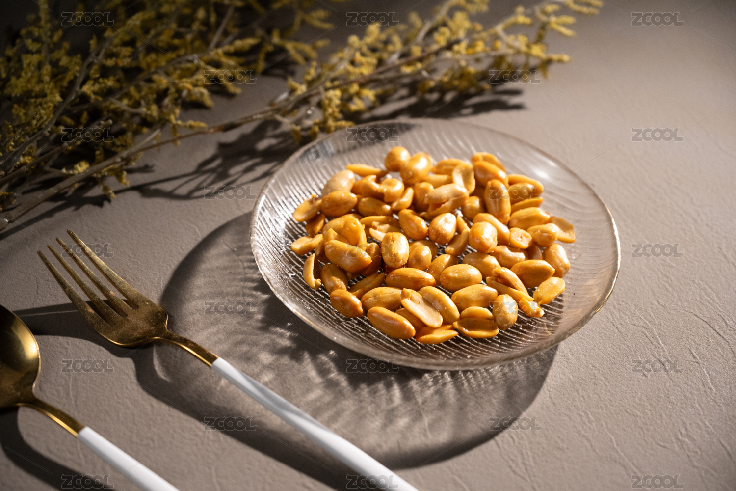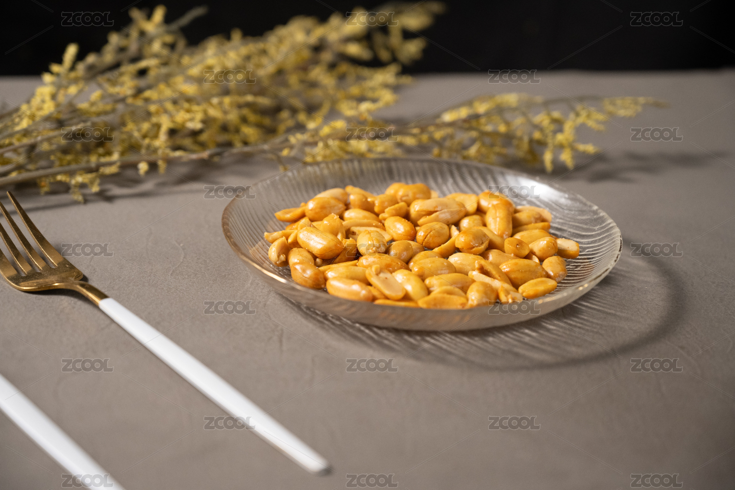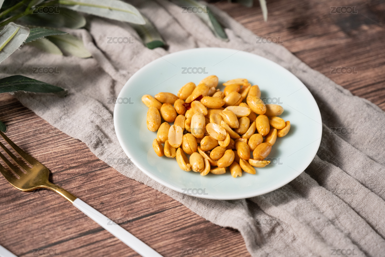 桌面上的盘子里的美味可口的酒鬼花生