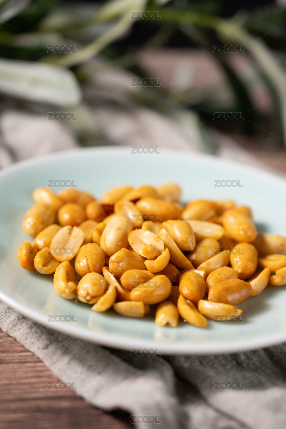 桌面上的盘子里的美味可口的酒鬼花生