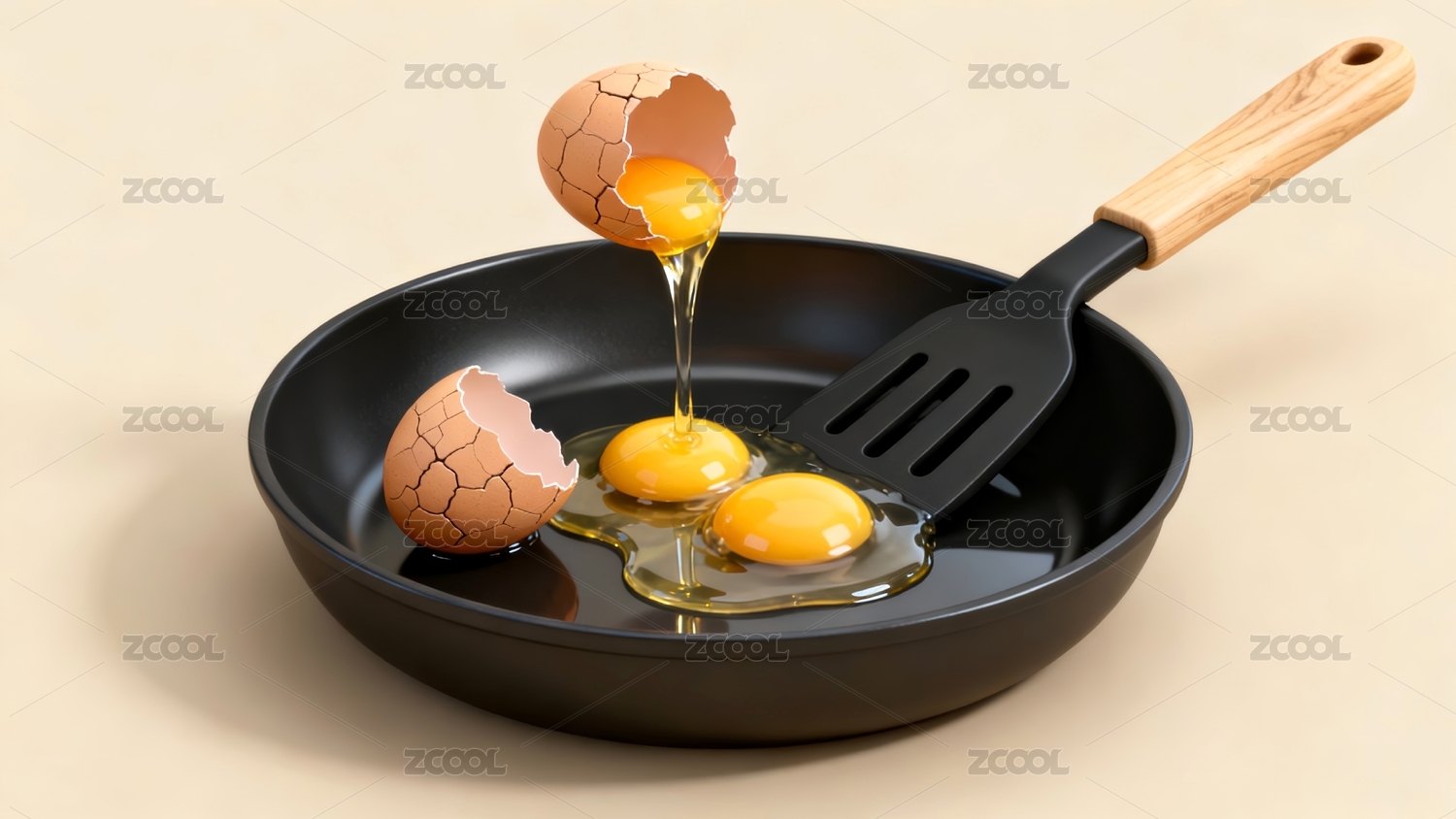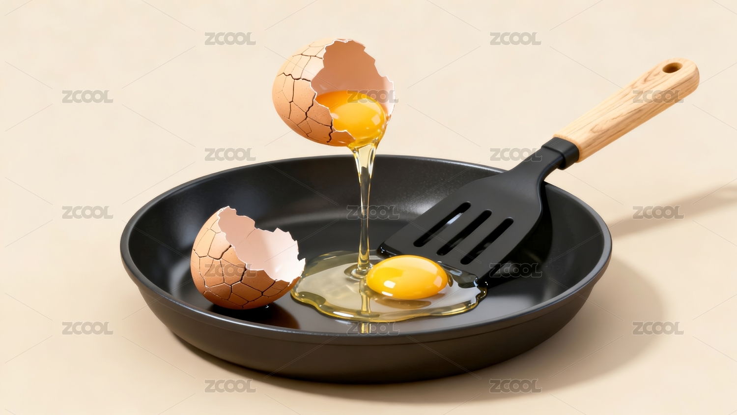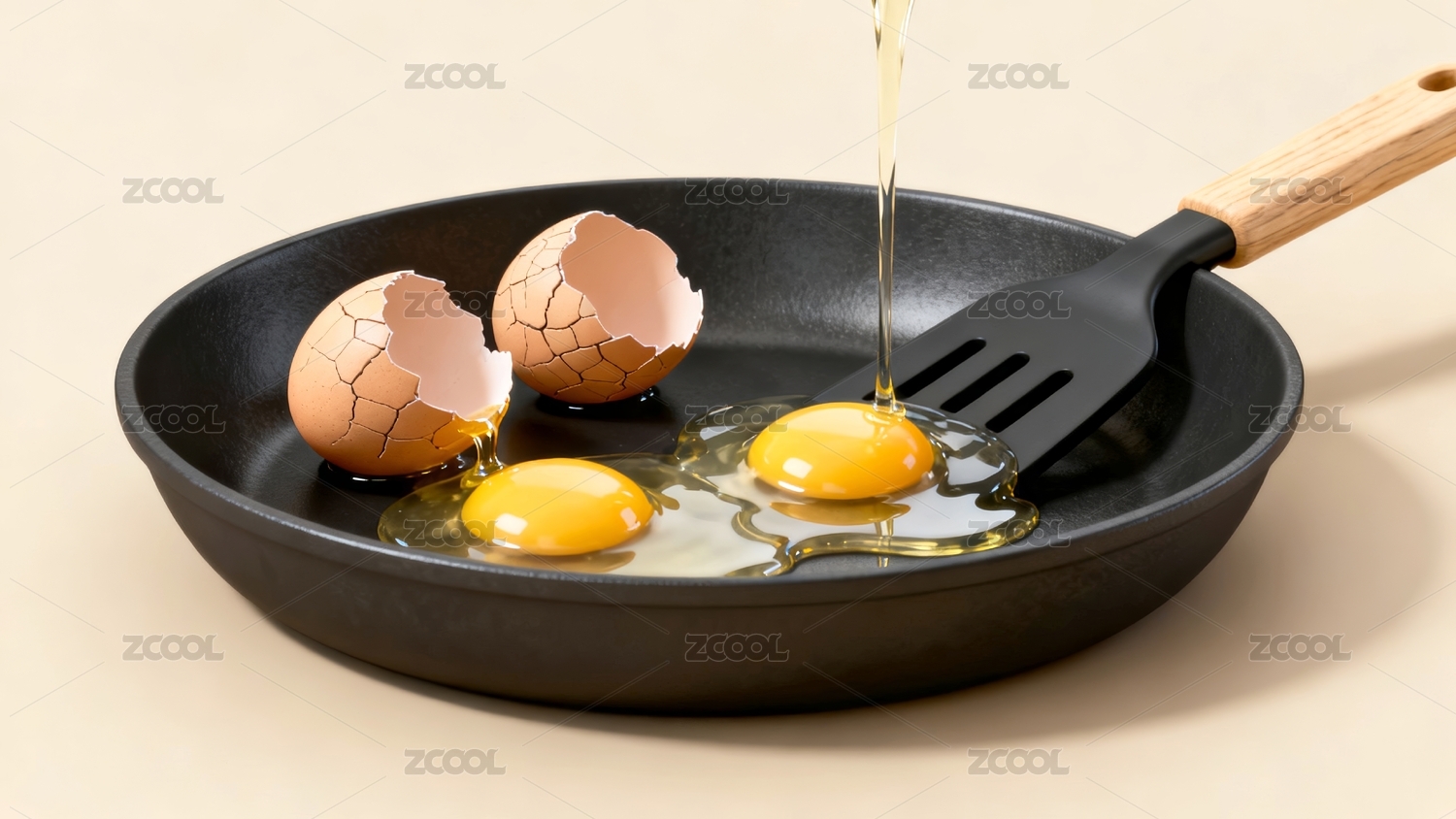 煎锅煎蛋烹饪美食场景