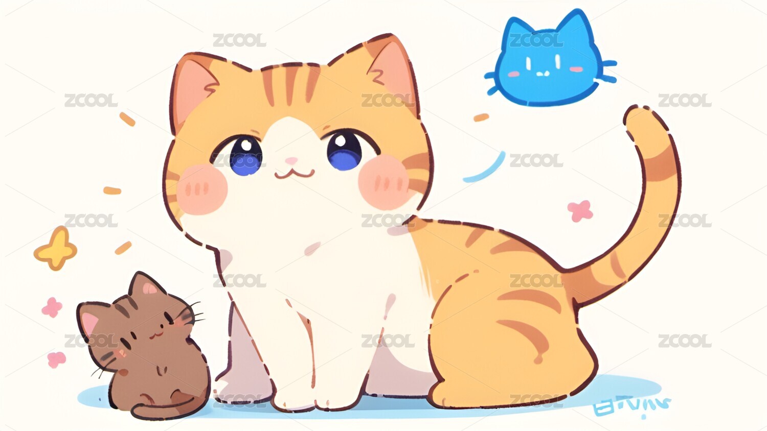 卡通,小猫,猫,可爱,动漫,漫画,壁纸,治愈,插画,动物