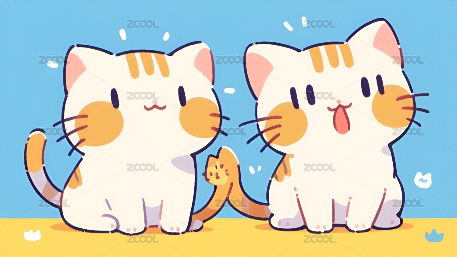 卡通,小猫,猫,可爱,动漫,漫画,壁纸,治愈,插画,动物