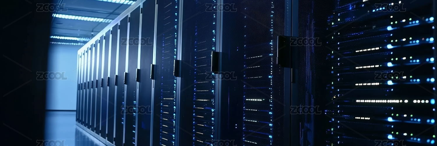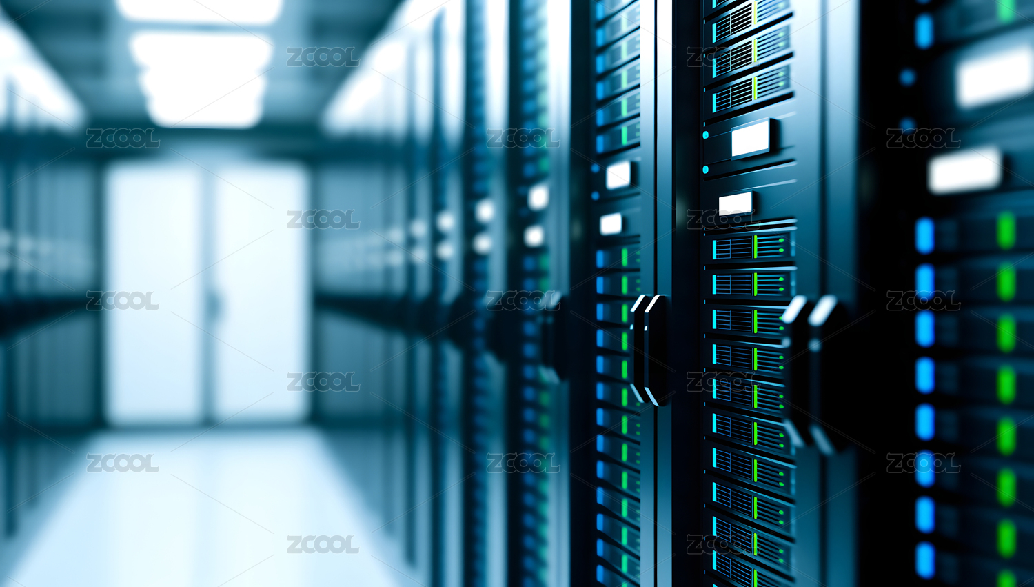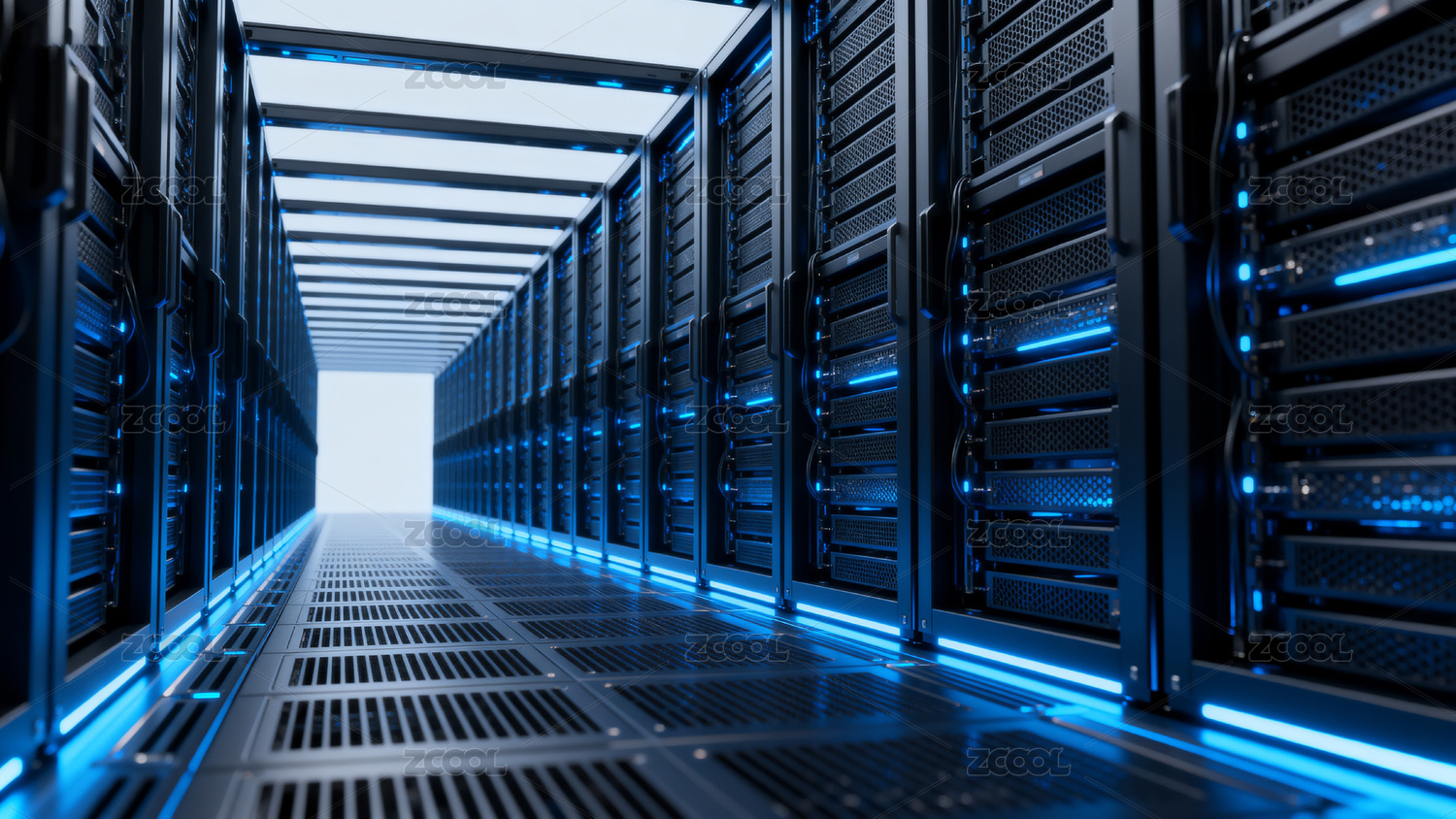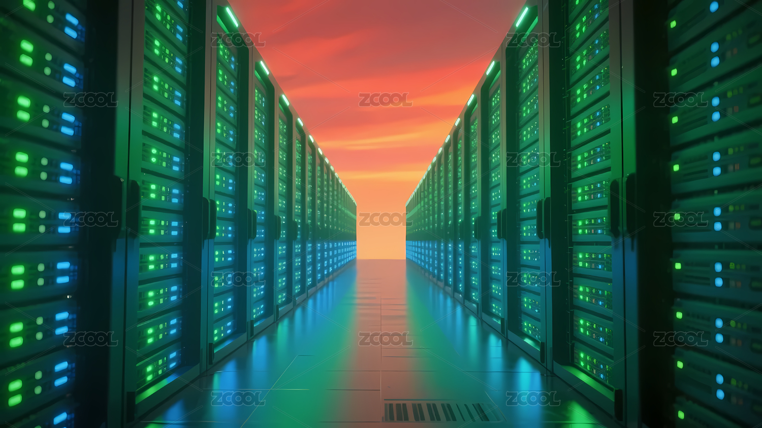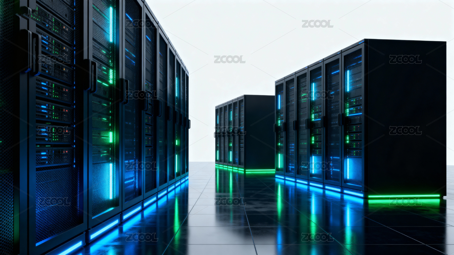 三维渲染的现代化高科技的服务器机房,强大的数据库和运算存储能力。