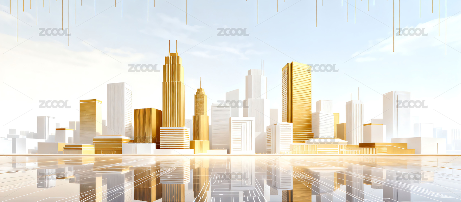 蓝色商务科技玻璃质感城市建筑主视觉背景