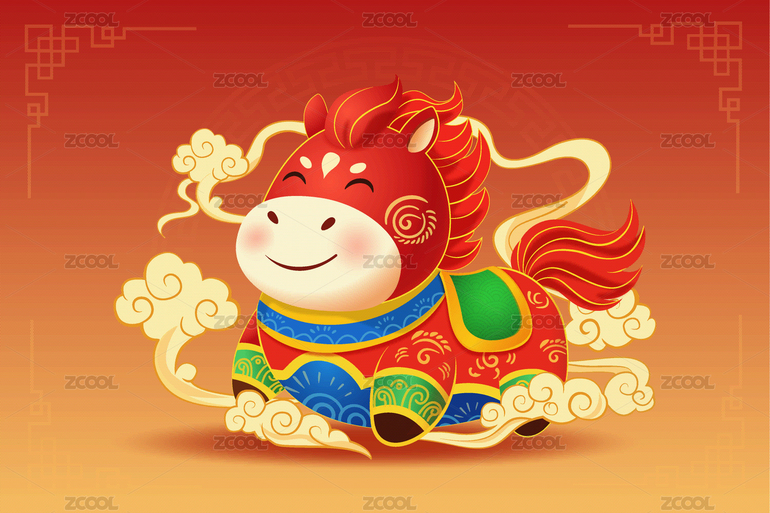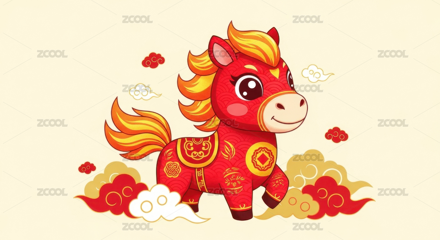 2026红色祥云卡通马