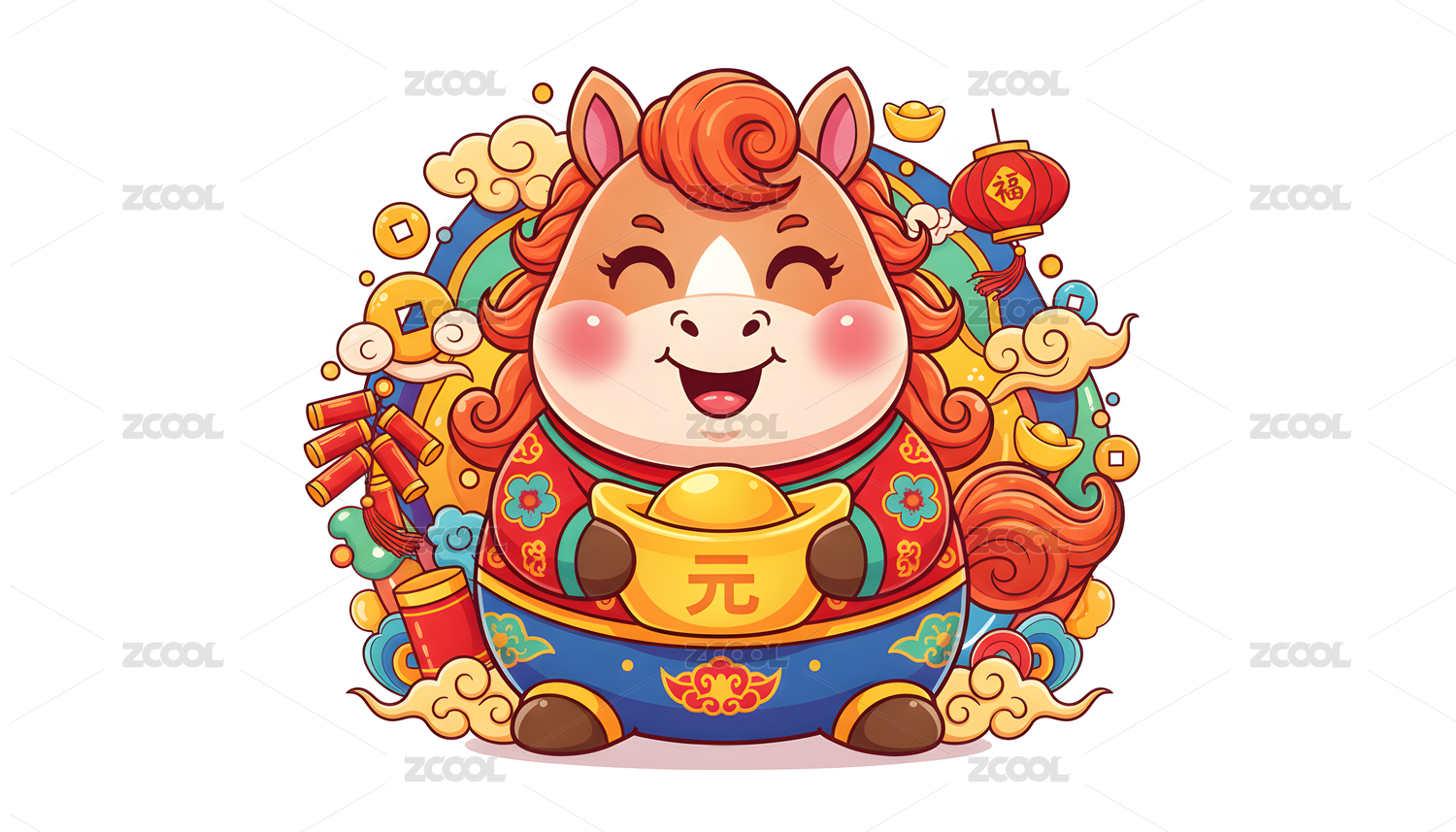 2026国潮喜庆吉祥的中式卡通小马