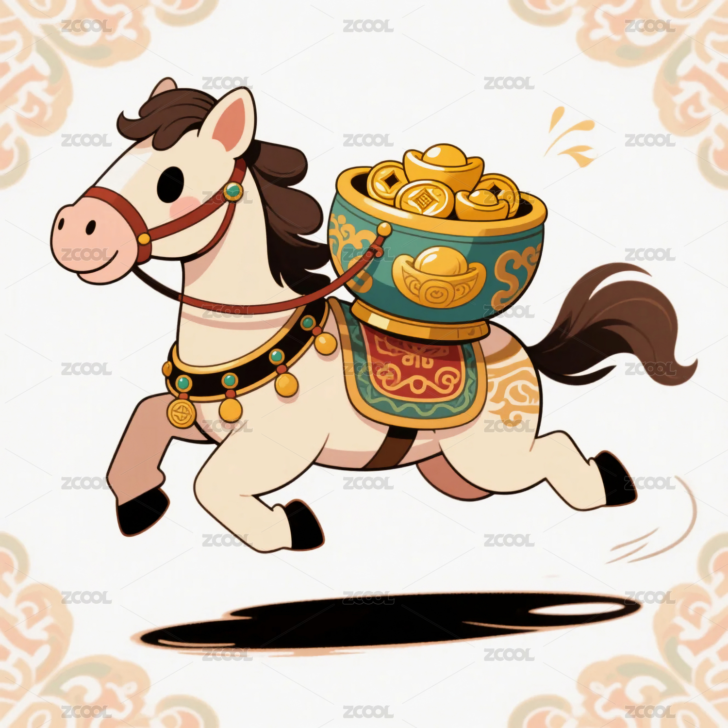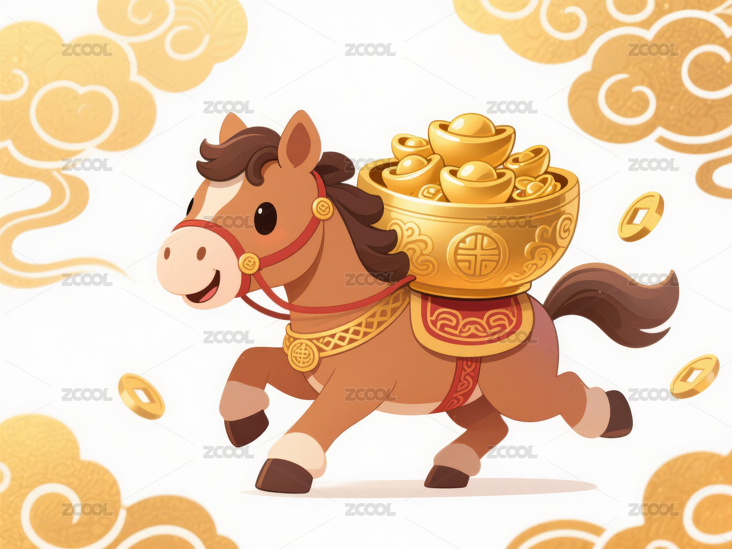 满载金元宝的卡通马