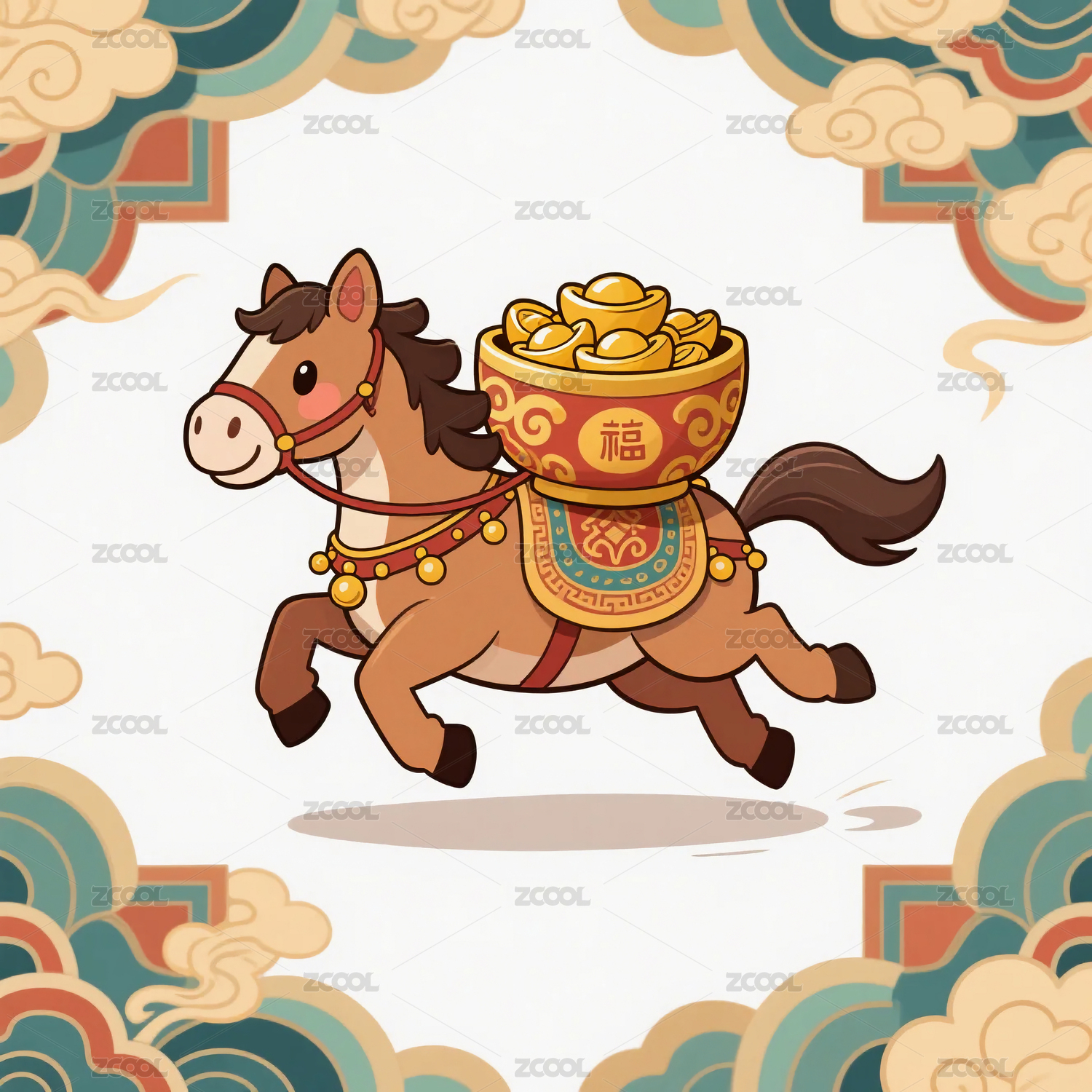骏马驮着聚宝盆奔跑