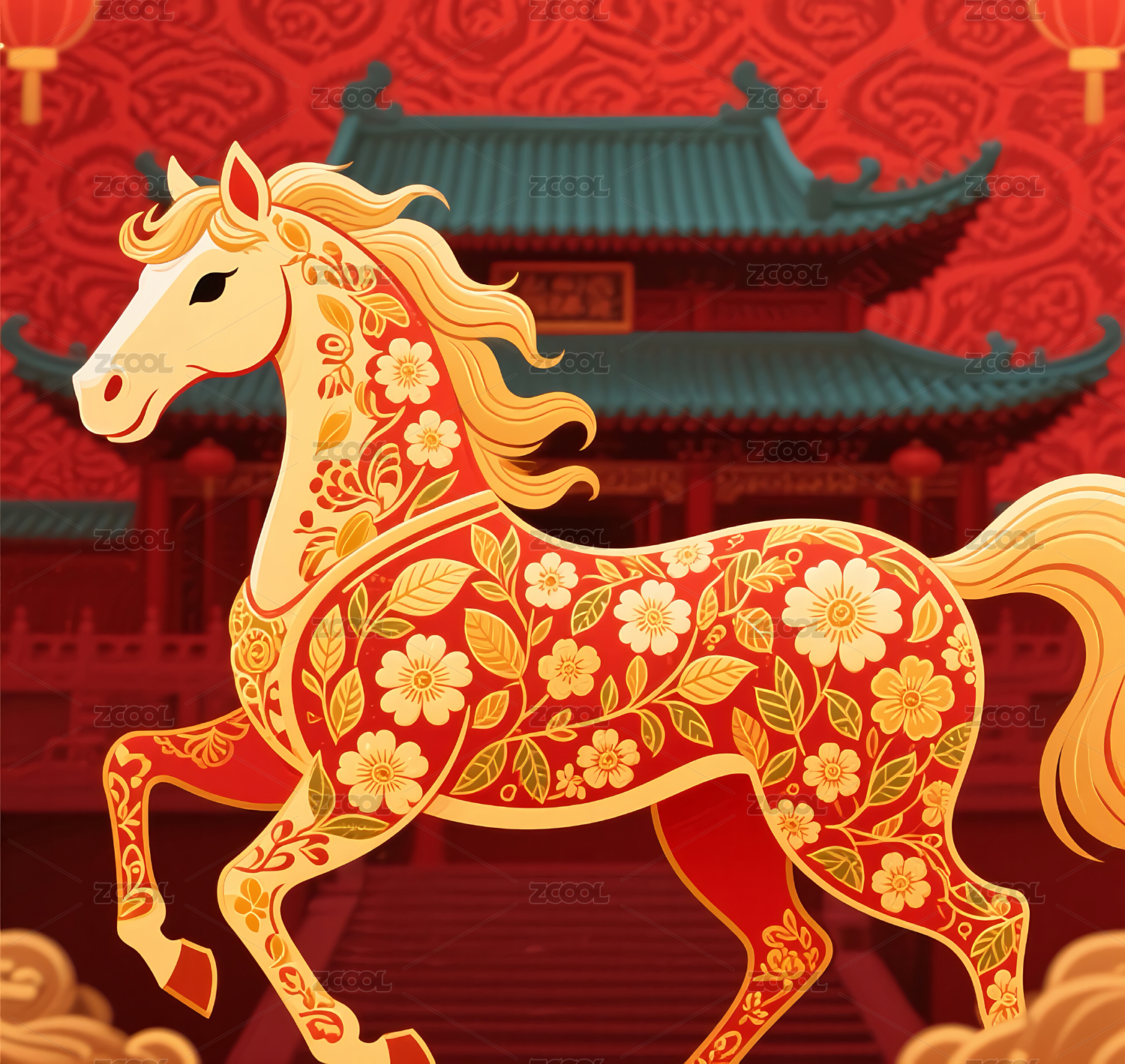 2026传统祥云骏马国潮插画