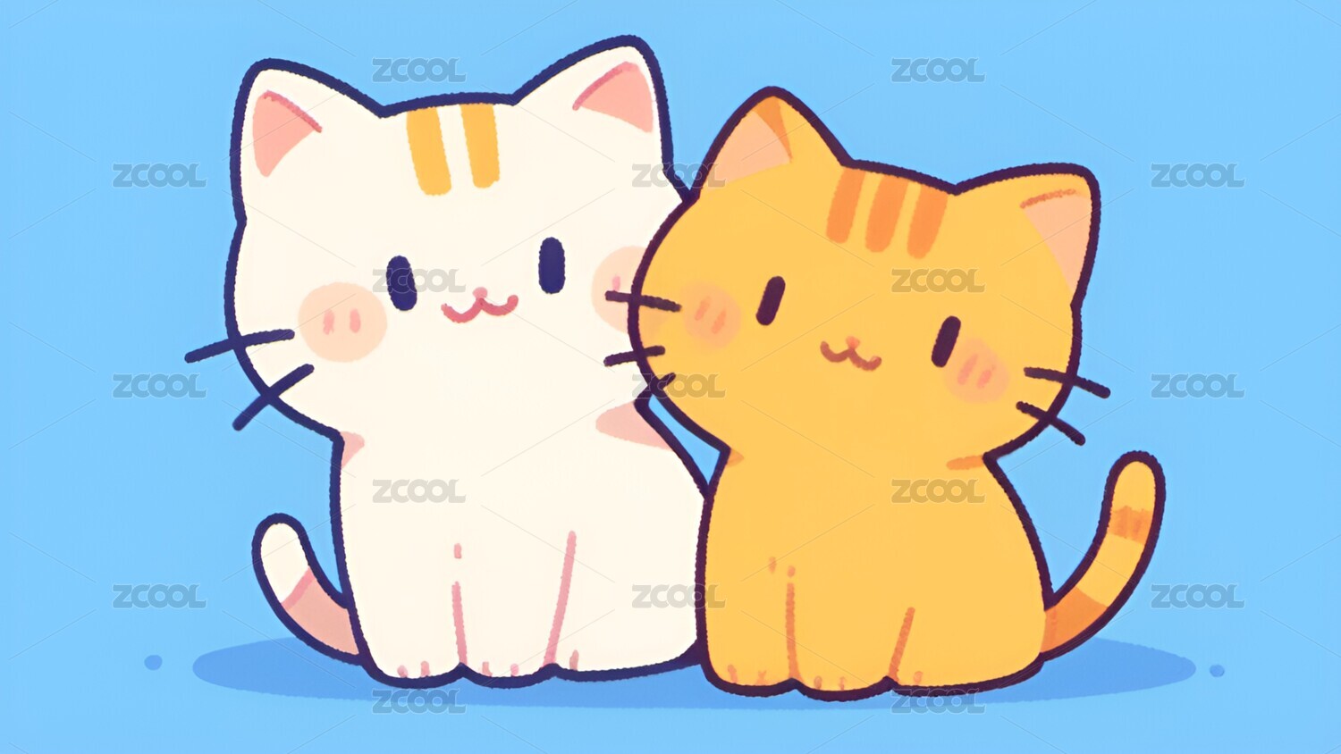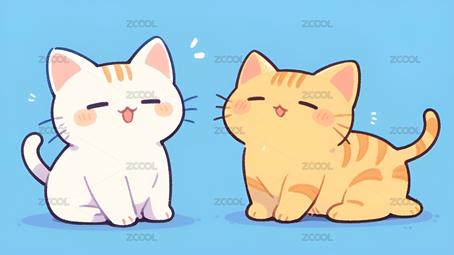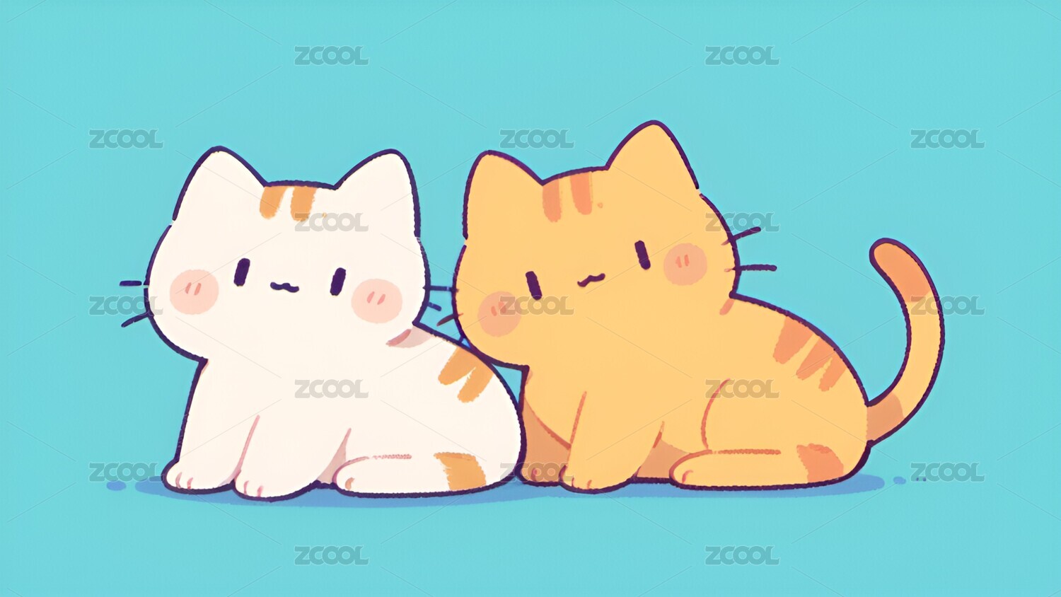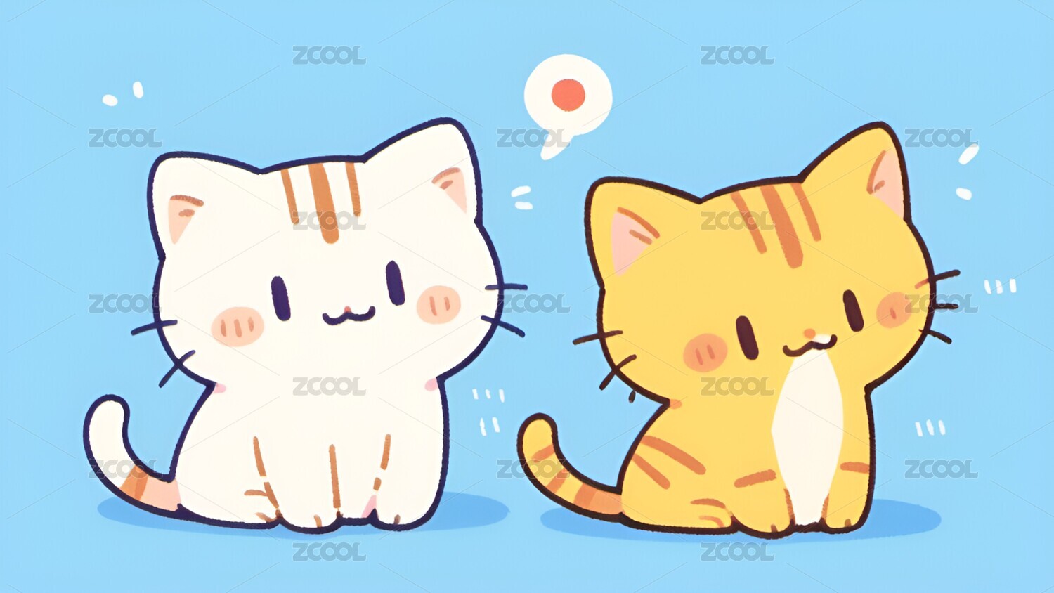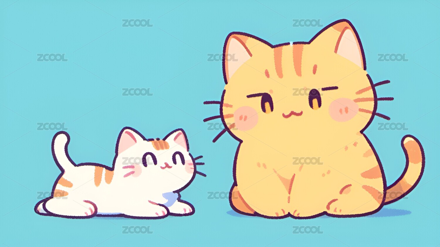 卡通,动漫,小猫,猫,可爱,治愈,插画,壁纸,动物