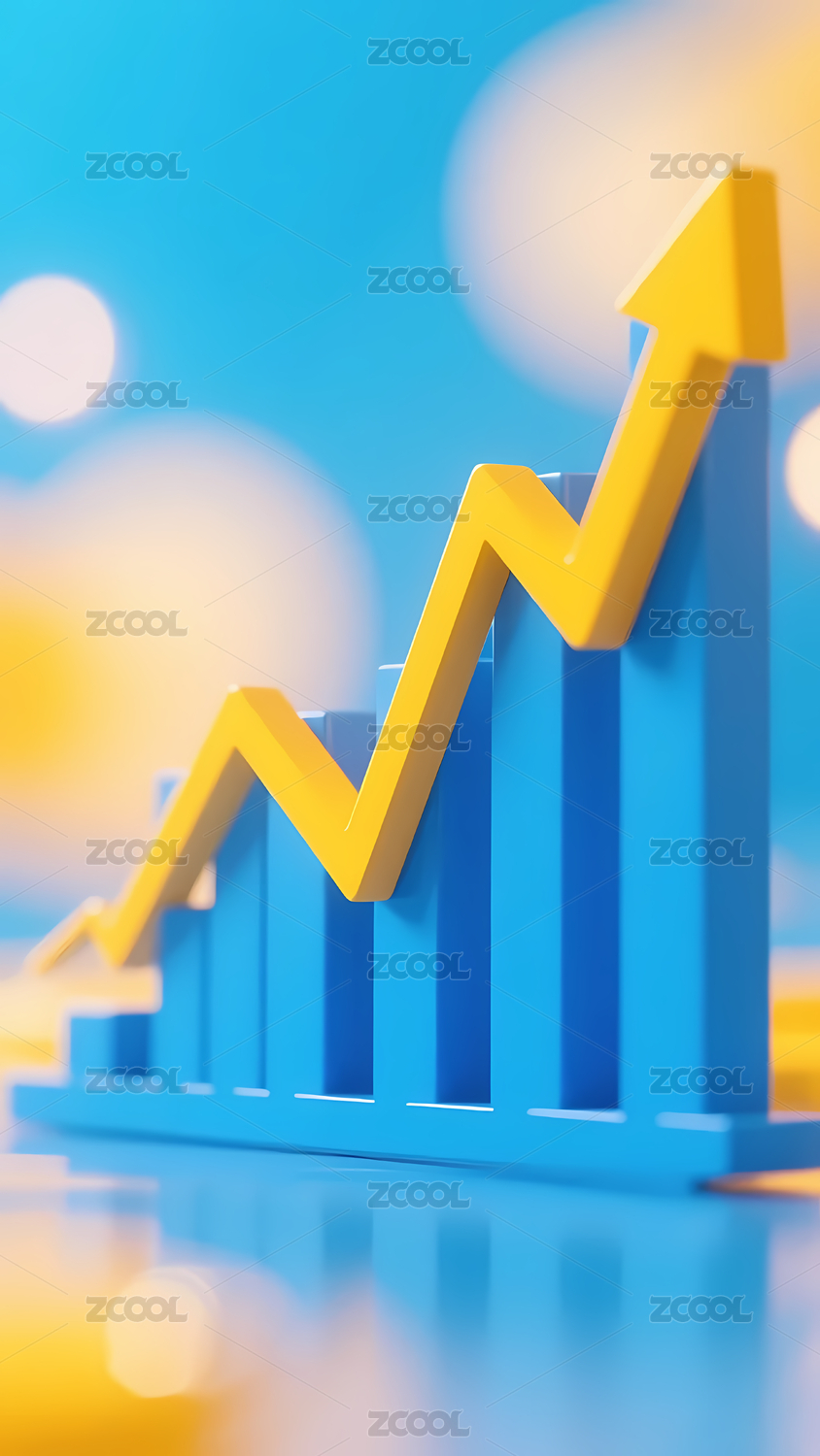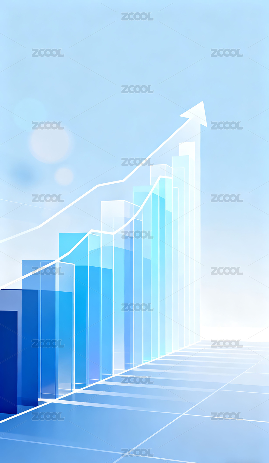 蓝色渐变玻璃质感金融柱状图增长箭头背景
