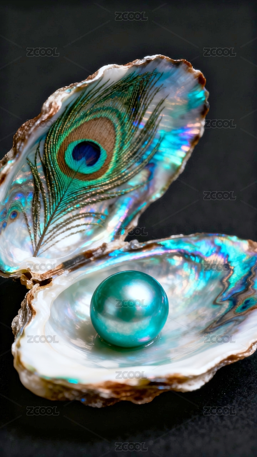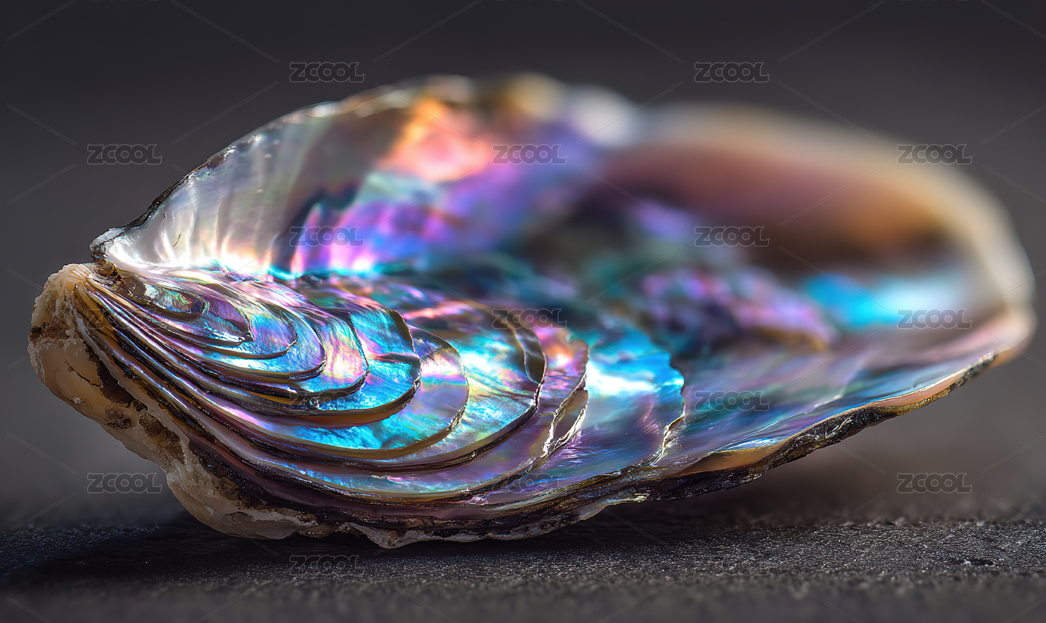 牡蛎贝壳中珍稀的黑色珍珠特写