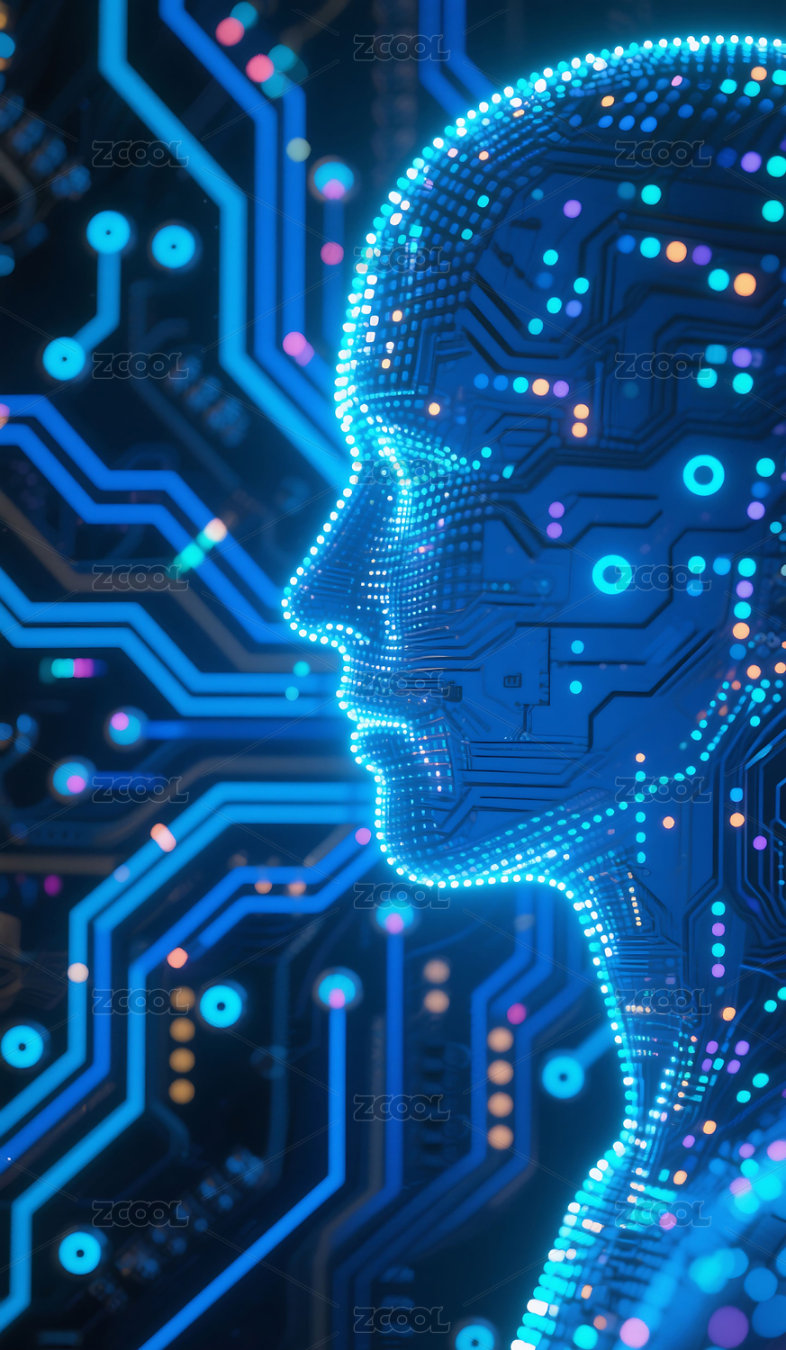 电路板构成的女性侧脸