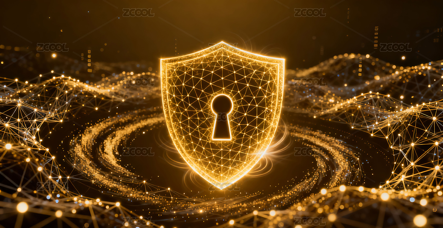商务,科技,数据,安全,盾牌,保护,背景,粒子,光效,金色
