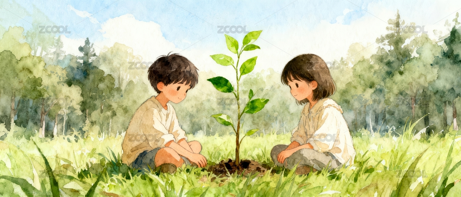 主视觉,商业,壁纸,设计,素材,场景,手绘,自然,儿童,植树