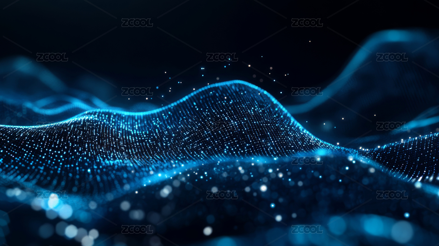蓝色光点波浪抽象背景