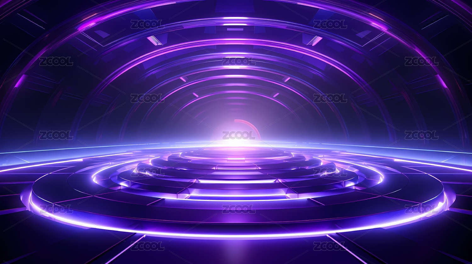 数码科技紫色霓虹灯抽象未来派隧道海报背景