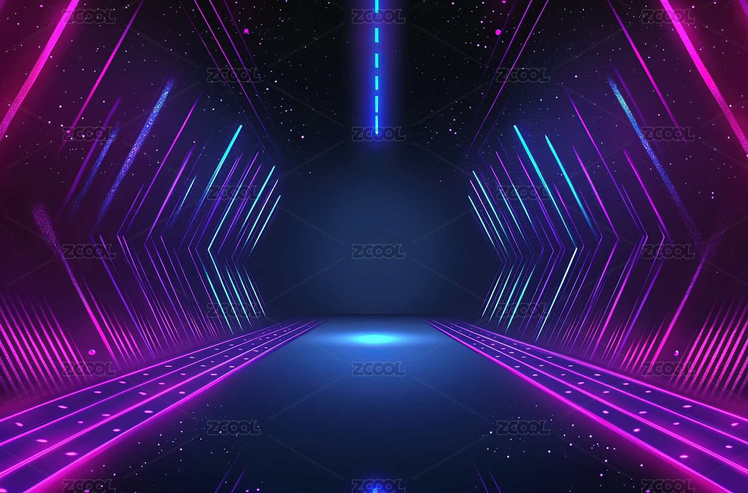 数码科技紫色霓虹灯抽象未来派隧道海报背景