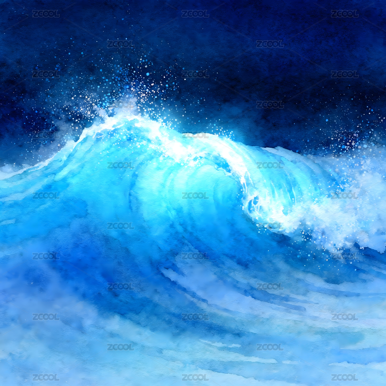 巨浪翻滚的蓝色彩绘