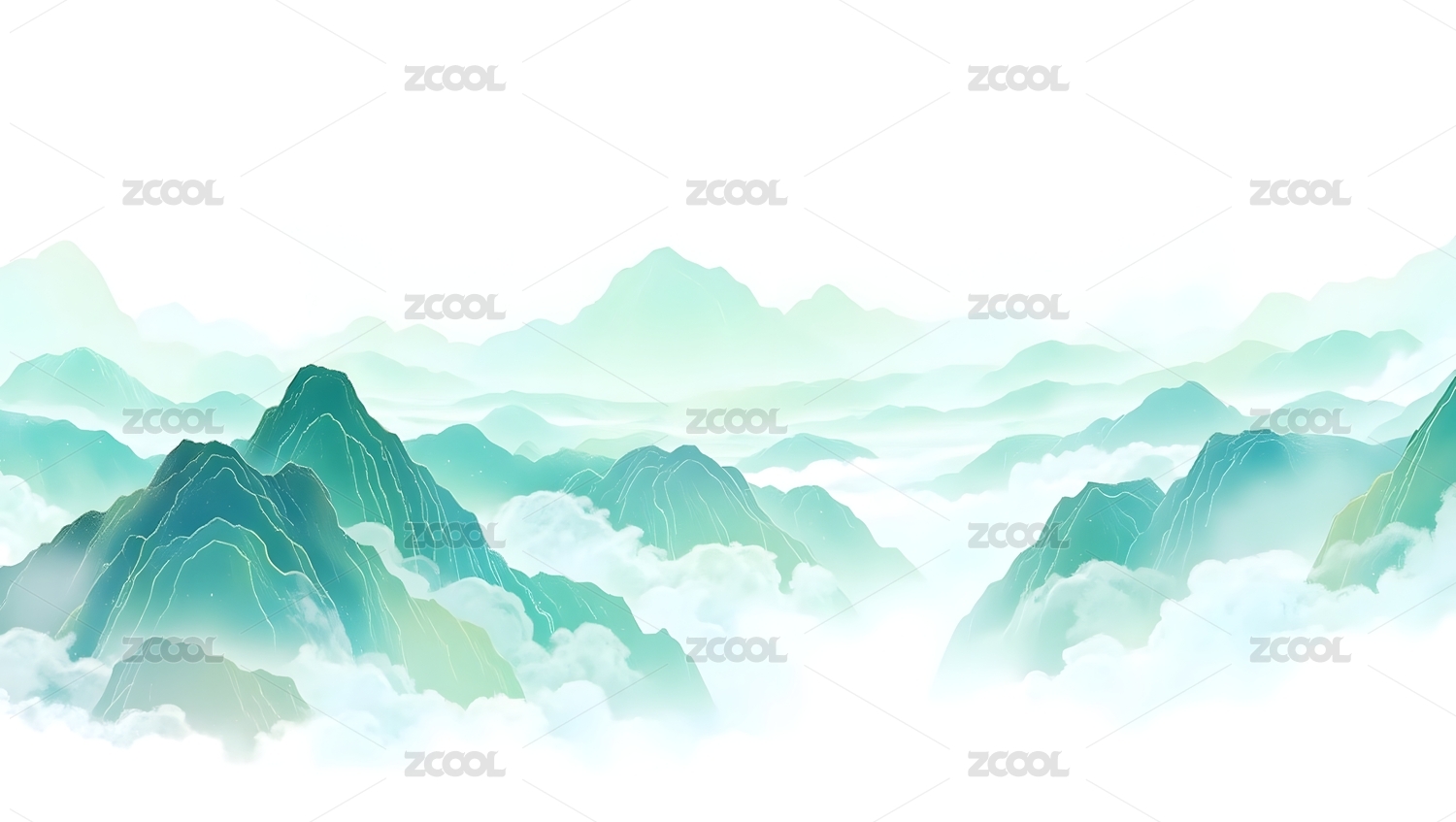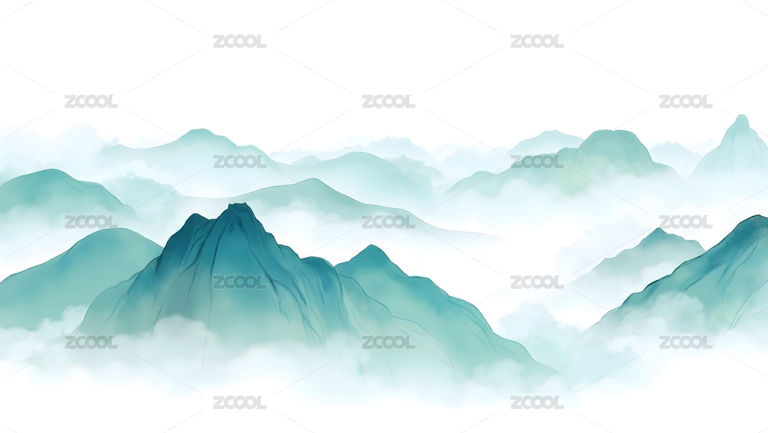 山峰,远景,自然,风景,翠绿,淡雅,朦胧,连绵,天空,云雾
