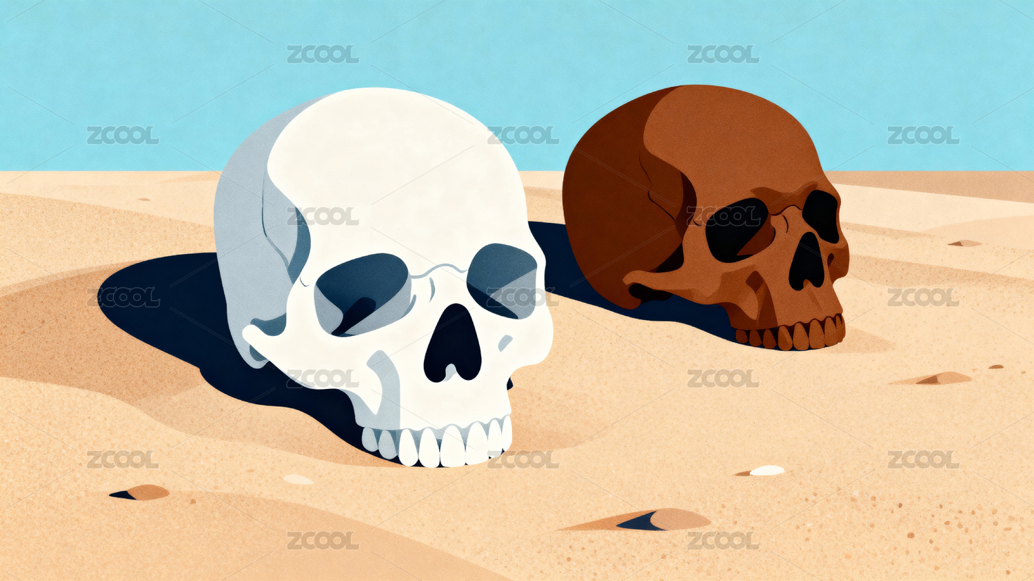 两具骷髅沙地并排